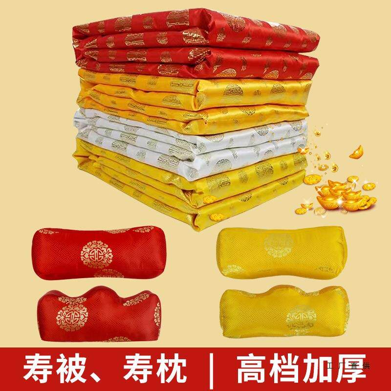 📚 枕寿被寿脚头品枕枕殡葬用全套普金457盖银铺金盖红老人死人枕头