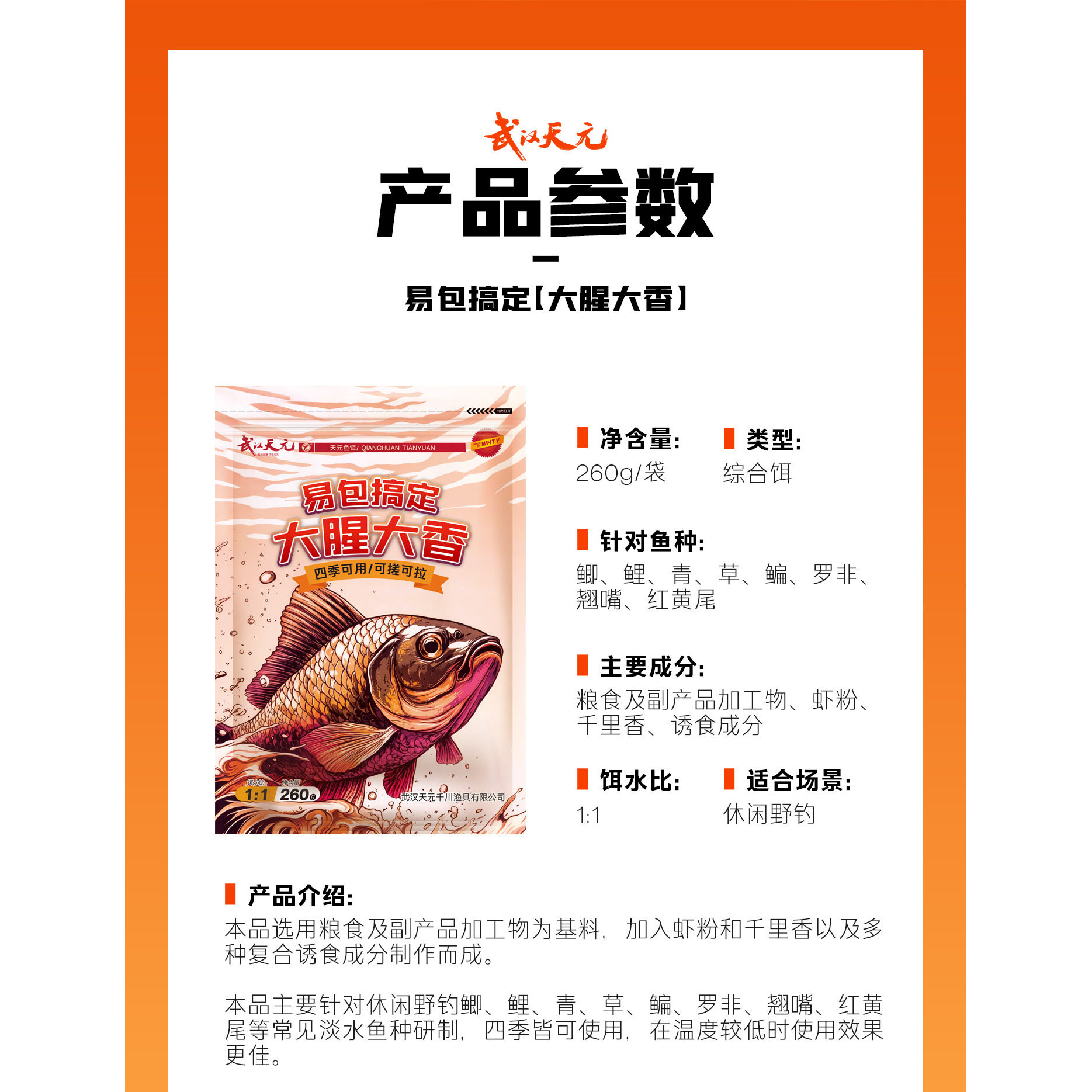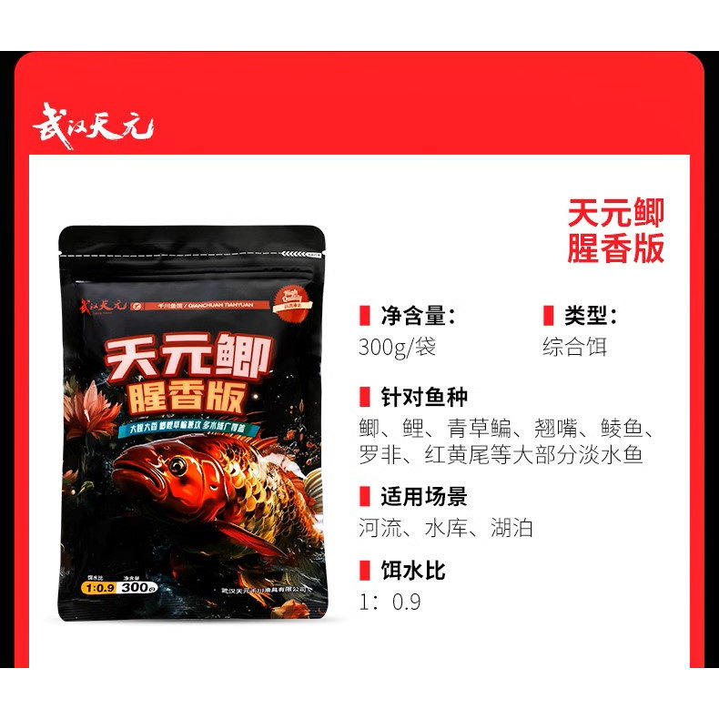 📚 武汉天元鱼饵红色红虫风暴腥香版饵料鲫鱼虾肉散炮野钓千里香套餐