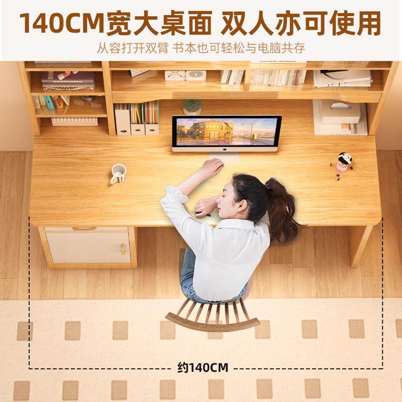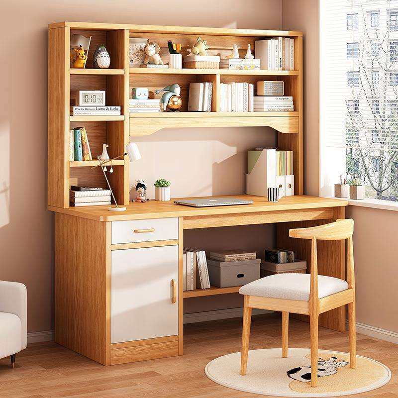 📚 书桌书架一体家用台式电脑桌带主机位实木写字桌出租屋床边桌子