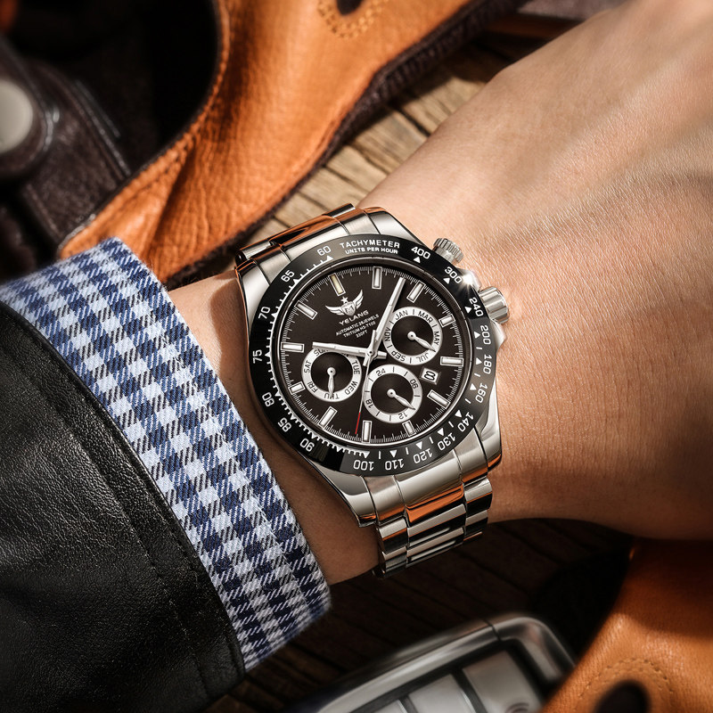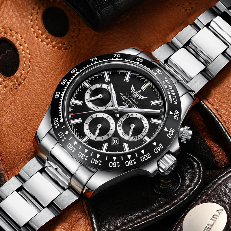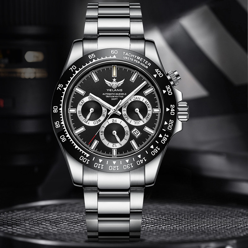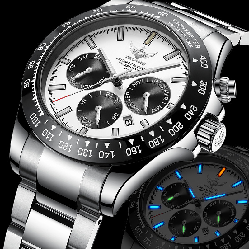 📚 野狼手表机械表男表运动氚气手表男款夜光熊猫防水男士手表V1033