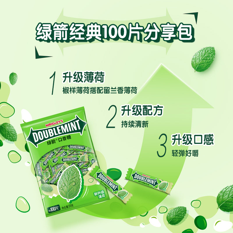 📚 绿箭口香糖约100片条装箭牌薄荷糖1大袋清凉清口接吻糖果清新口气
