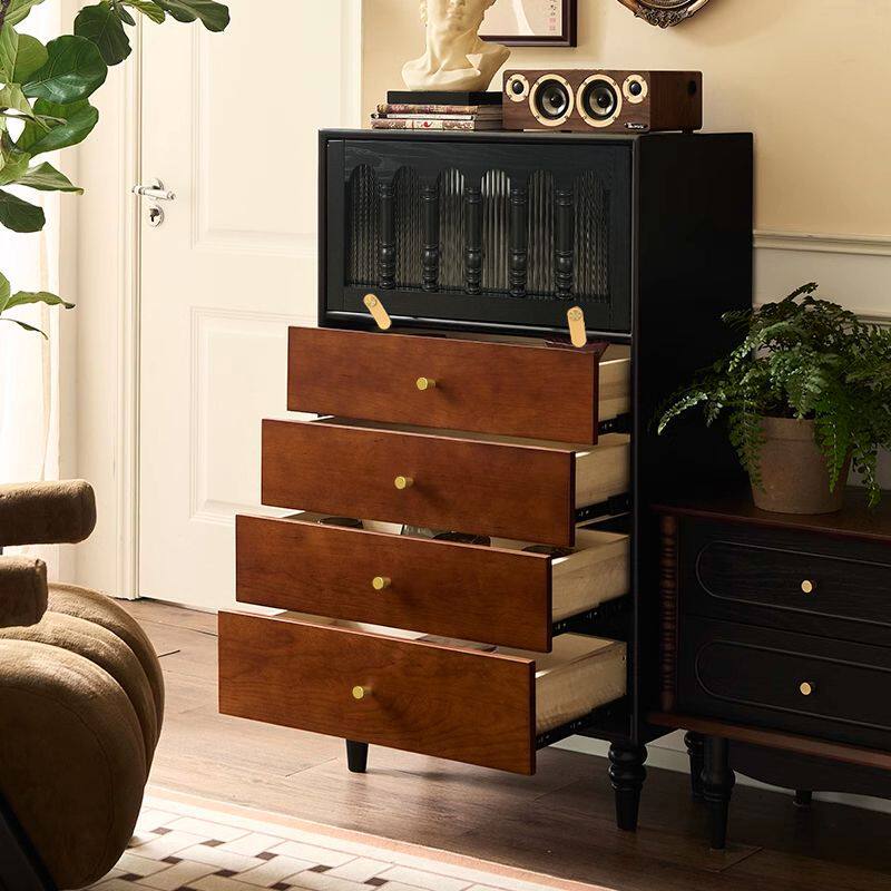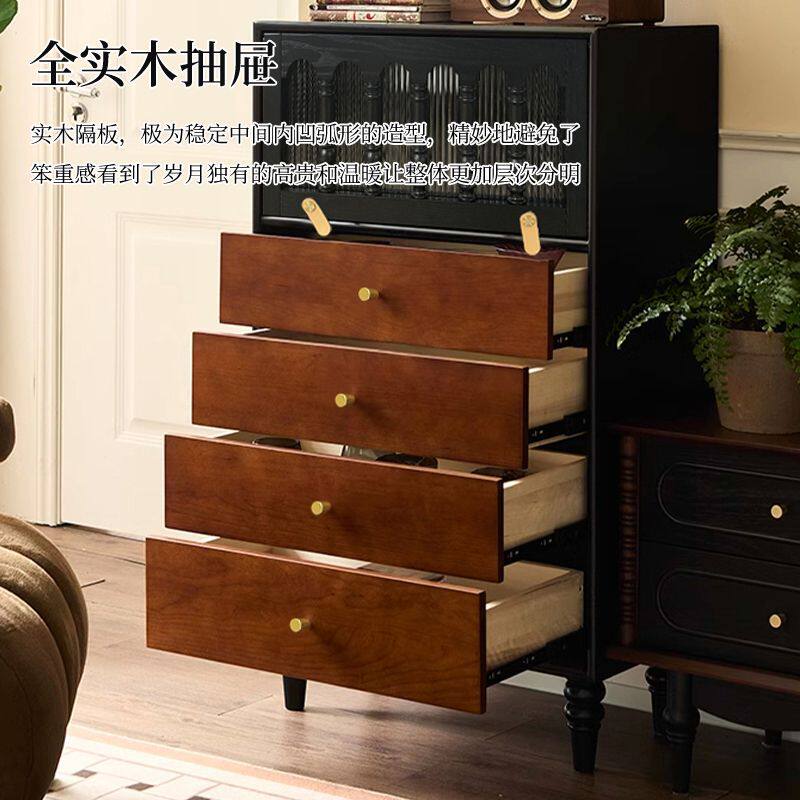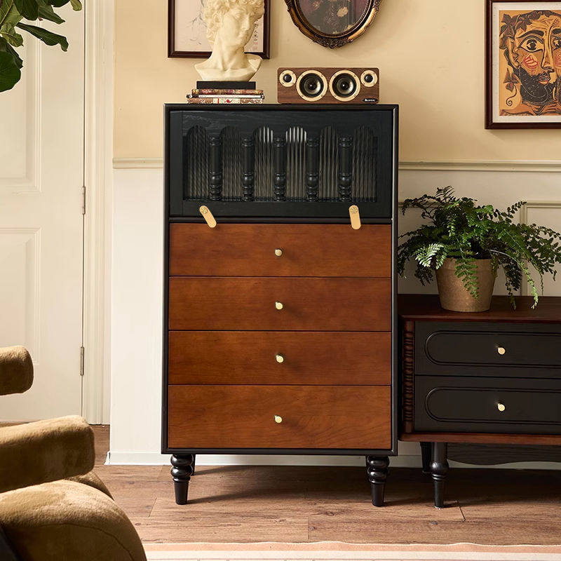 📚 2026复古实木斗柜卧室中古风储物收纳柜小户型家用边柜拼色床尾柜