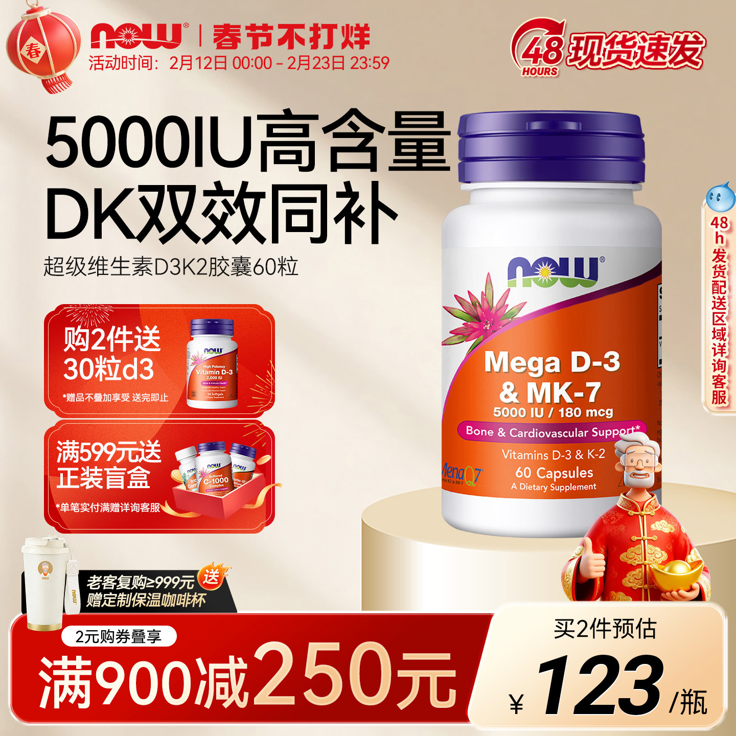 48¥ CZ001 PXPWUNGpi2i¥ https://m.tb.cn/h.7CVAc8g NOW维生素d3k2成人补钙MK7备.孕25羟基VD3搭镁美国进口DK胶囊诺奥 --------------------- 【原售价】499元 【现售价】169元。