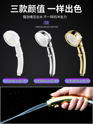 📚 淋浴压力花洒喷头儿童卫生间增压手持冲凉蒸压花酒家用沐浴莲蓬头