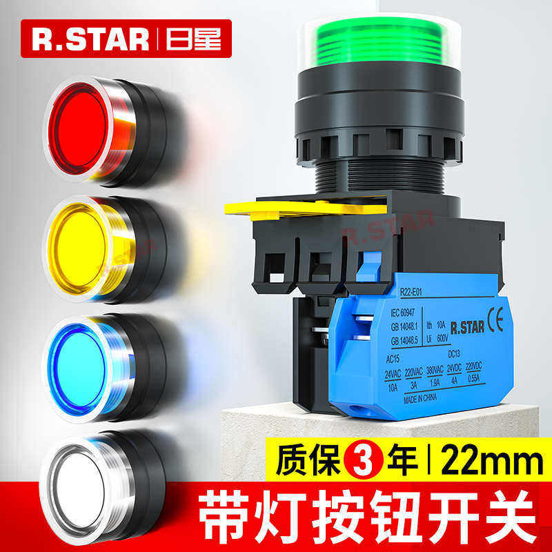 📚 带灯按钮开关24V/220V/12V按压式自复位自锁电源启动带LED指示灯