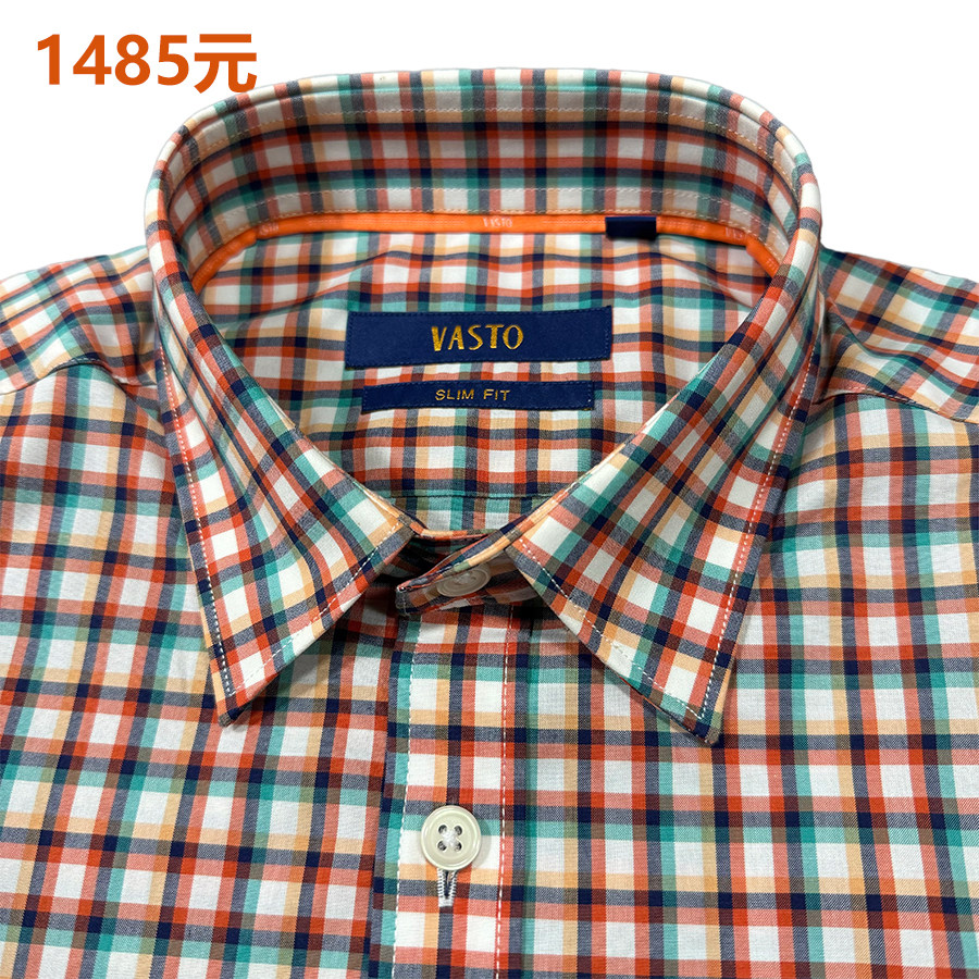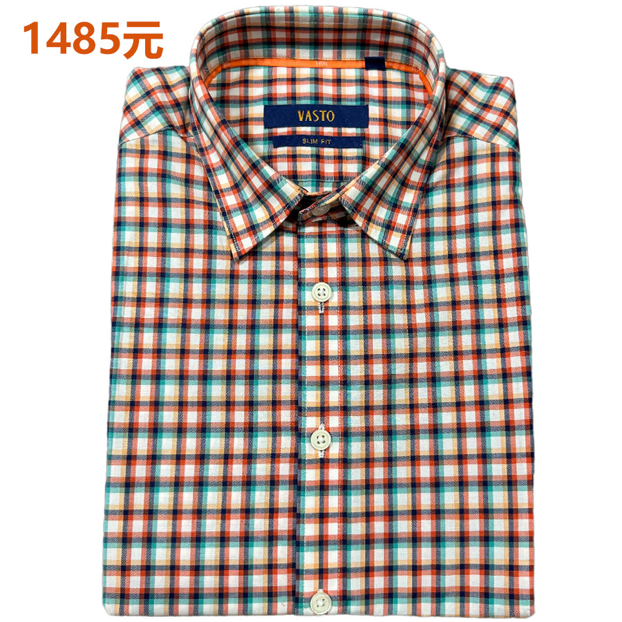 📚 一线品牌商场1485元男士时尚小格子短袖衬衫纯棉透气舒适修身青年