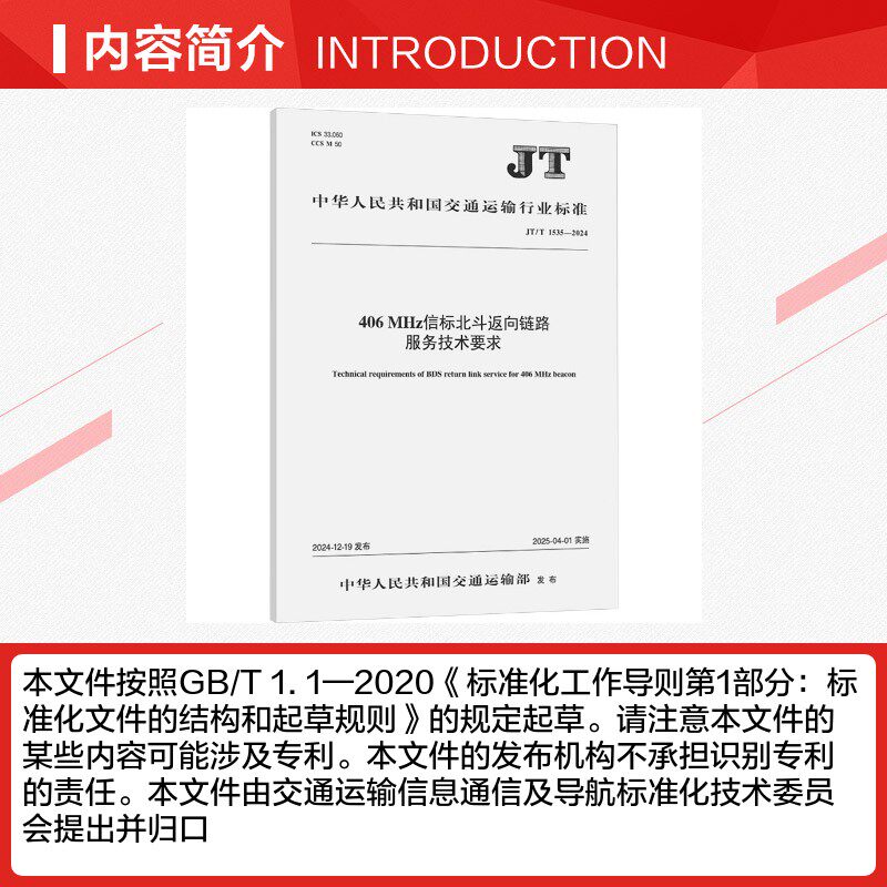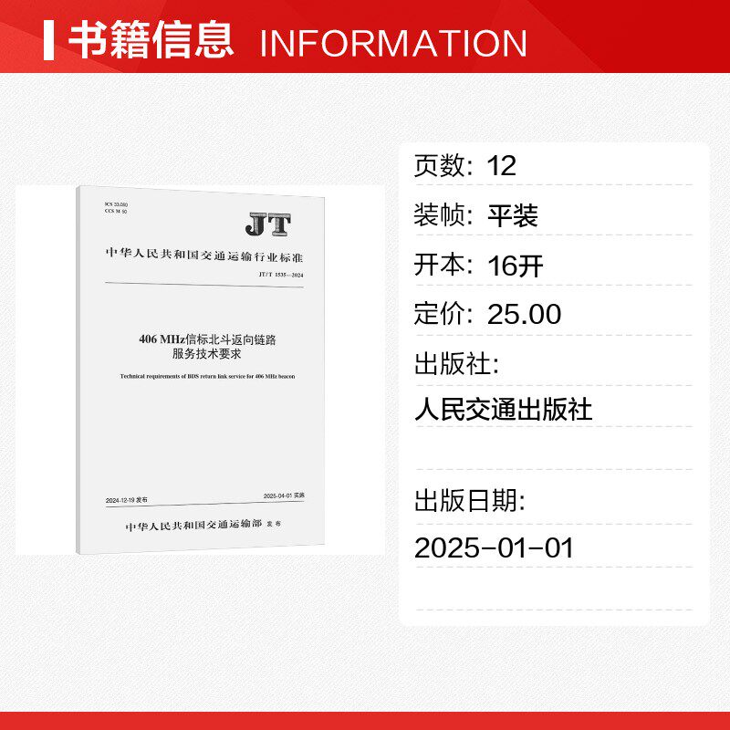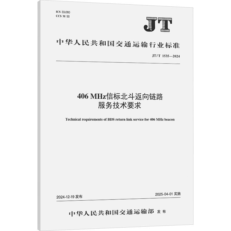 📚 406 MHz信标北斗返向链路服务技术要求 JT/T 1535-2024 中华人民共和国交通运输部 建筑/水利(新)专业科技 新华书店正版图书籍