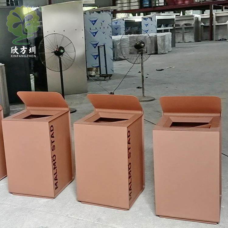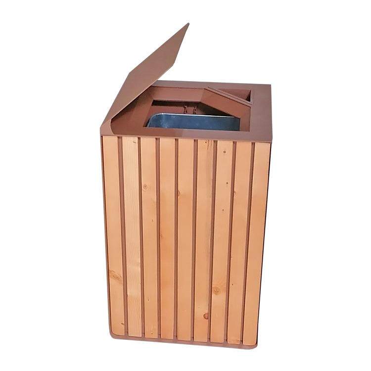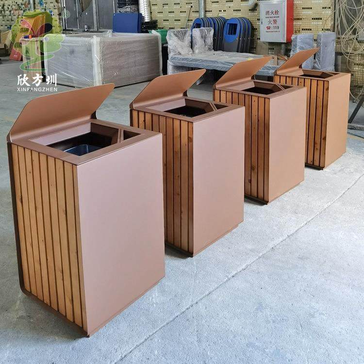 📚 广东公园小区户外烤漆不锈钢木条方形环卫垃圾桶大容量单筒果皮箱