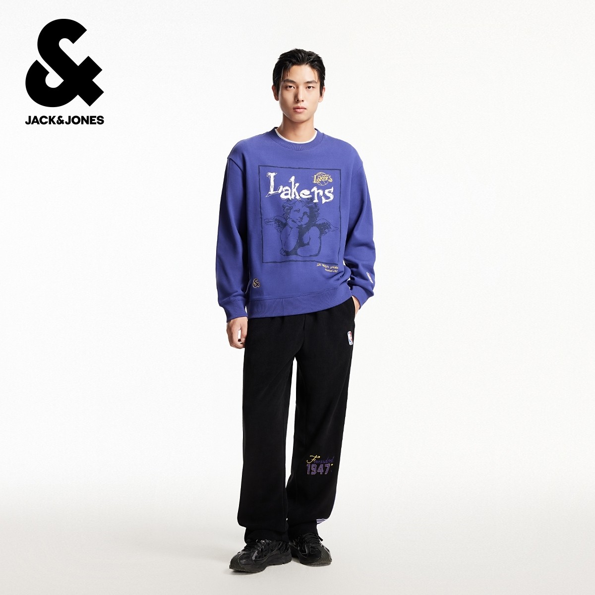📚 杰克琼斯NBA联名款湖人队男装冬季新款卫裤宽松休闲舒适长裤子