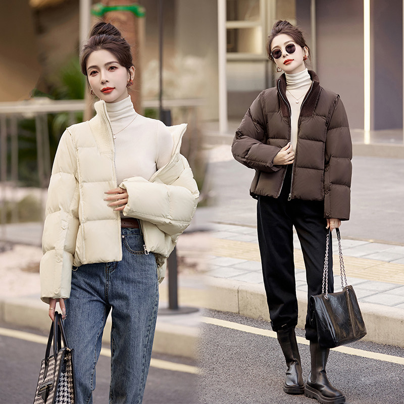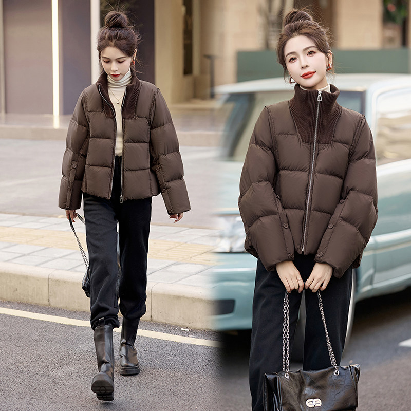 📚 韩版短款大码宽松咖色羽绒服女冬2023新款小个子加厚美拉德外套
