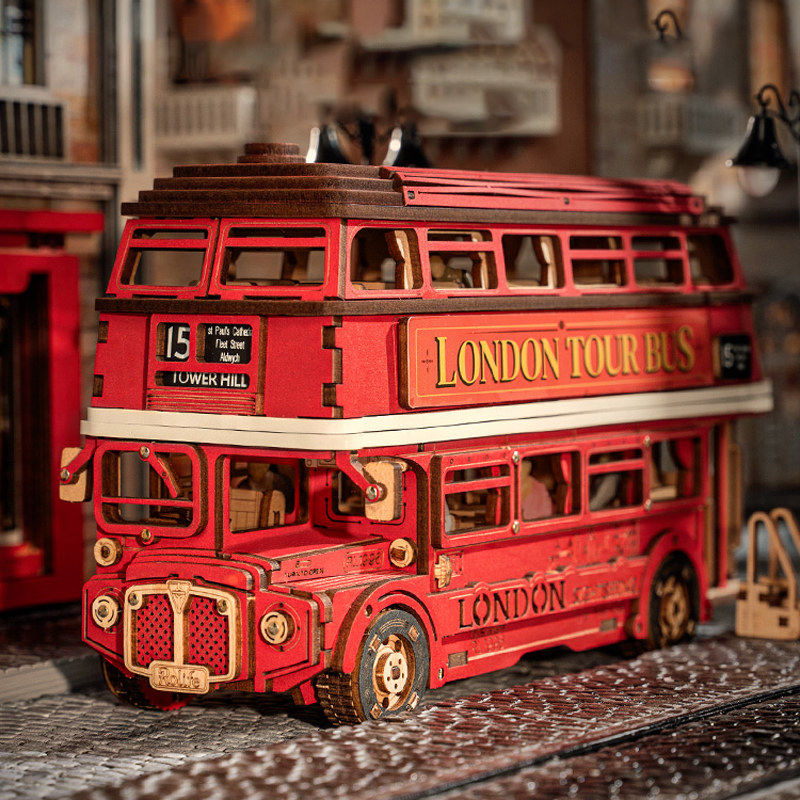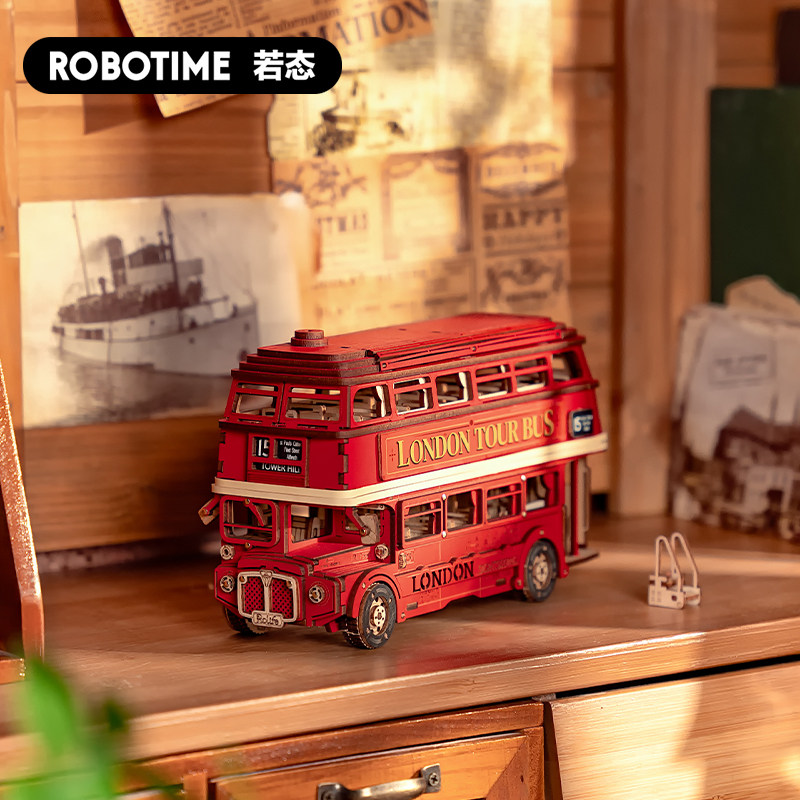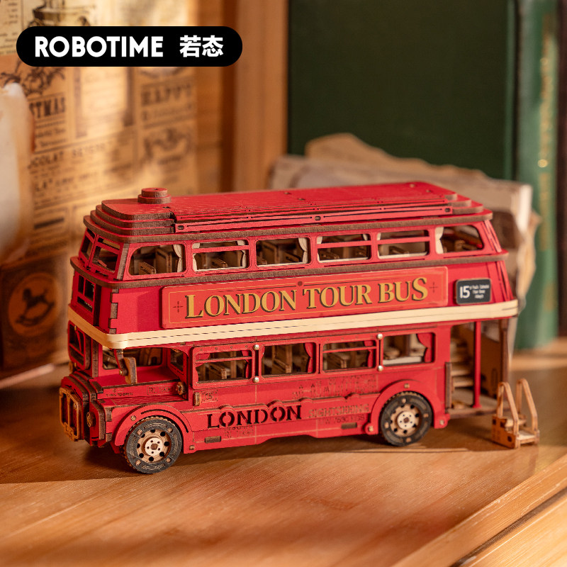 📚 若来造物集伦敦巴士积木3d立体拼图木质益智拼装模型儿童玩具汽车