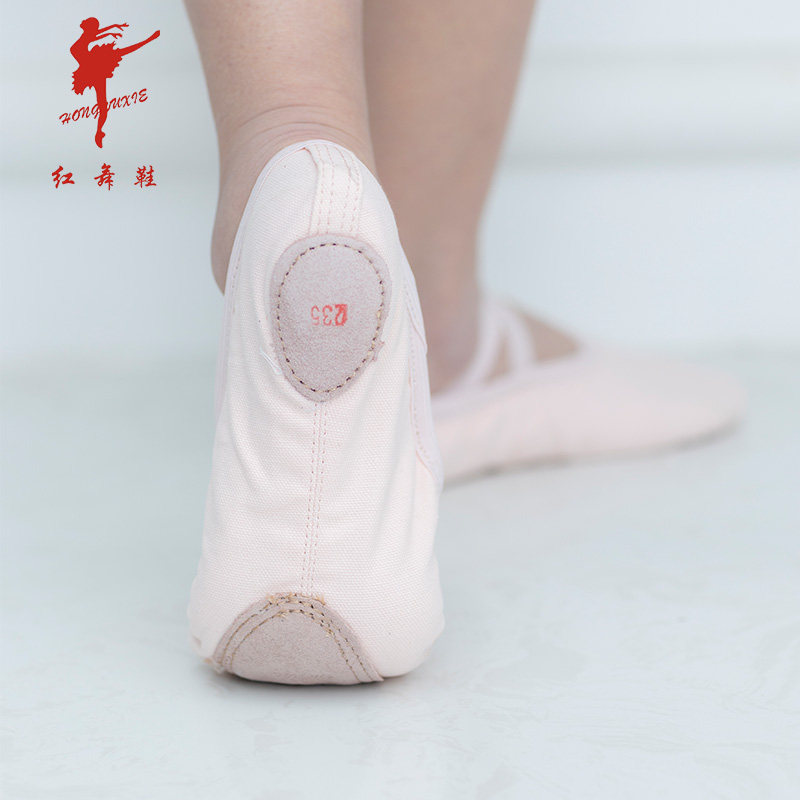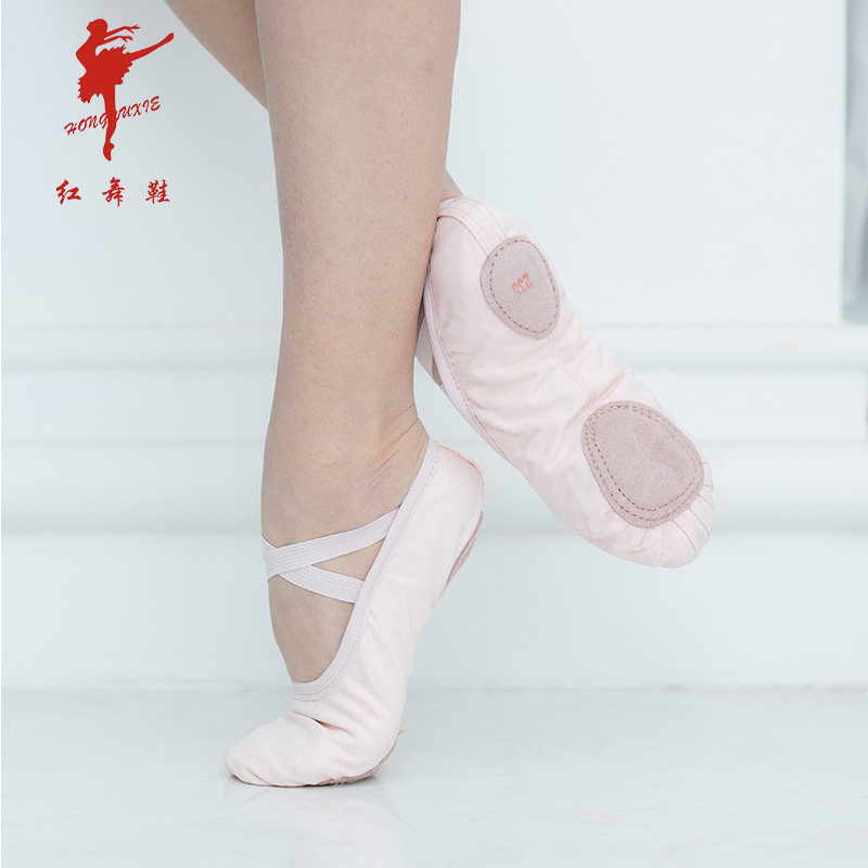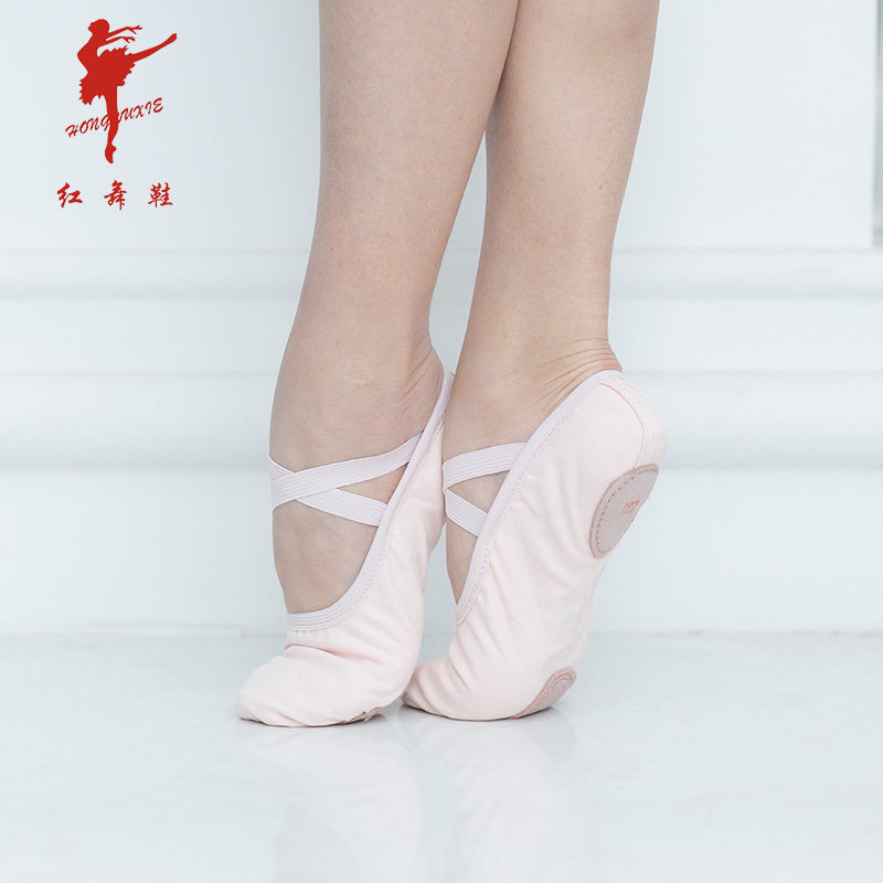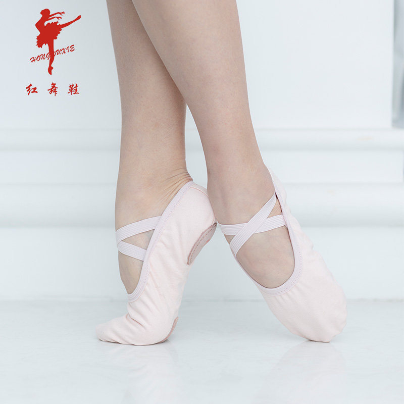 📚 红舞鞋舞蹈鞋女儿童软底练功鞋中国舞免系带猫爪芭蕾形体鞋10505