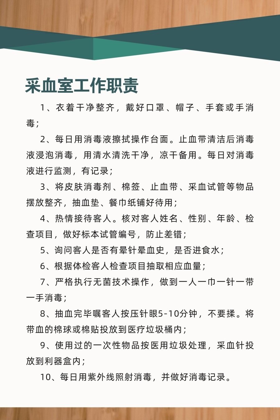 📚 采血室工作制度海报展板采血工作流程墙贴纸采血室工作职责KT板