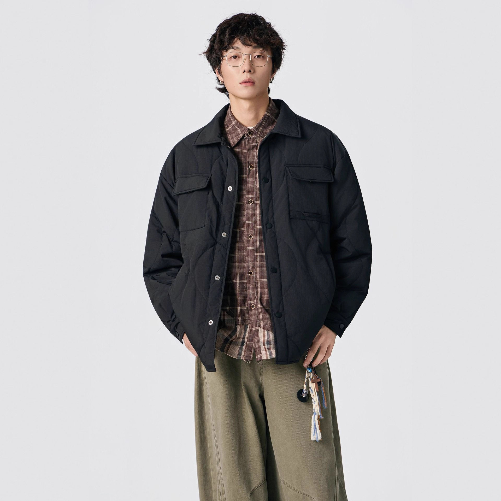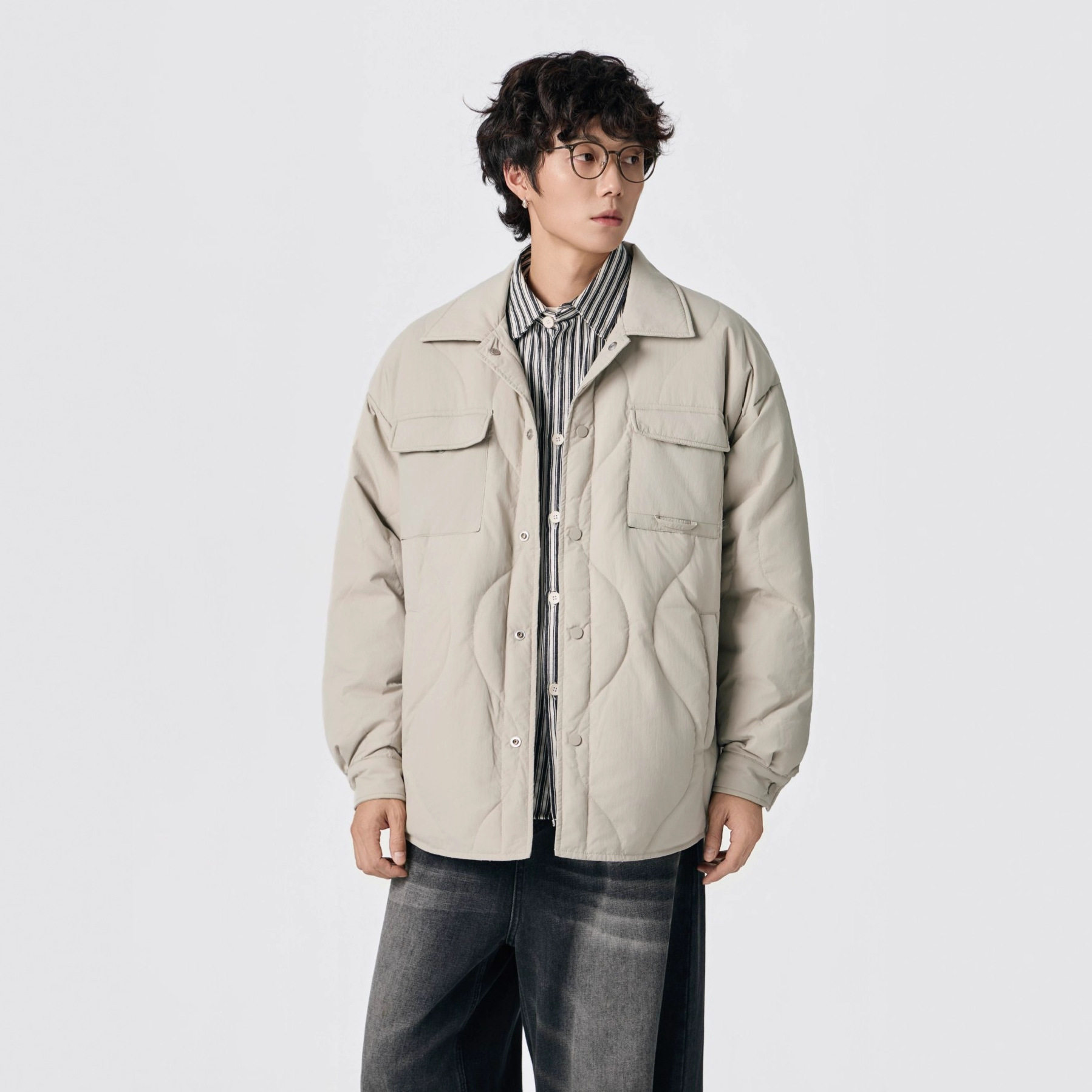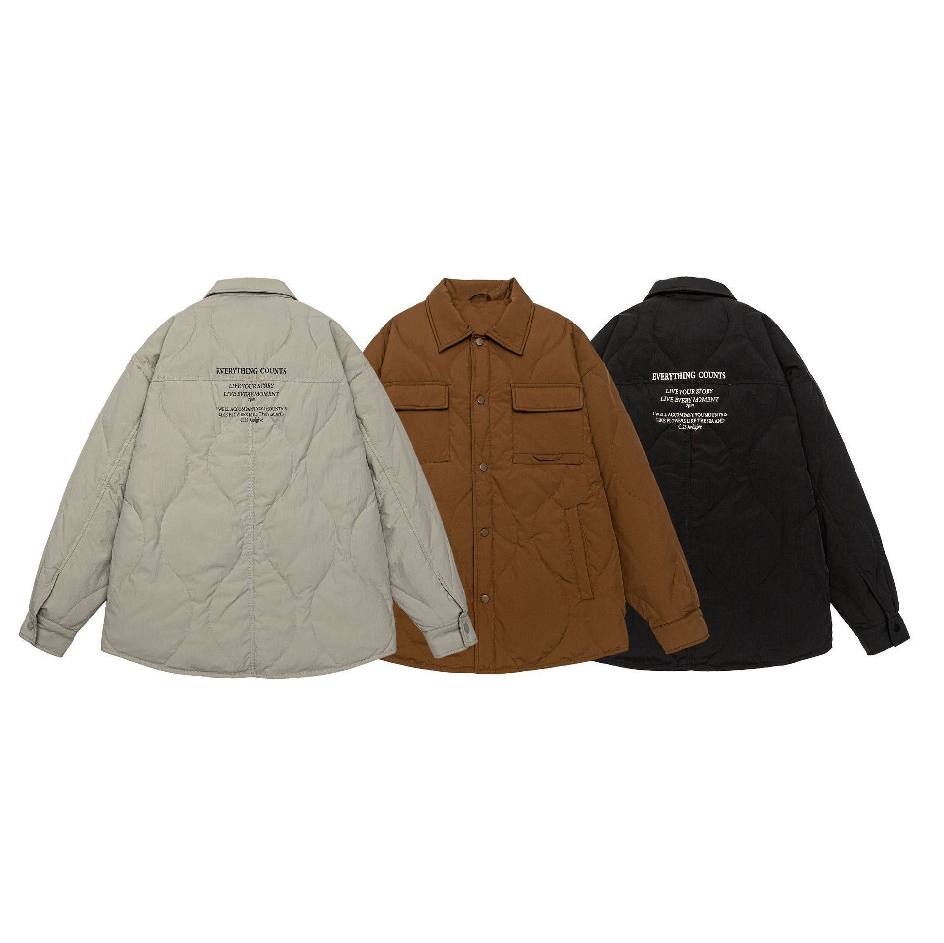 📚 儒孟90白鸭绒印花衬衫羽绒服男款冬季美式宽松翻领轻薄大码外套男