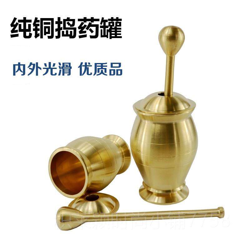 📚 正品加药厚缸纯铜捣药中罐药捣桶 家用优质研钵药 药具铜制捣器