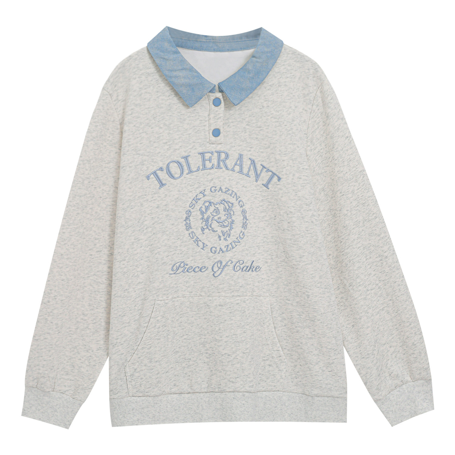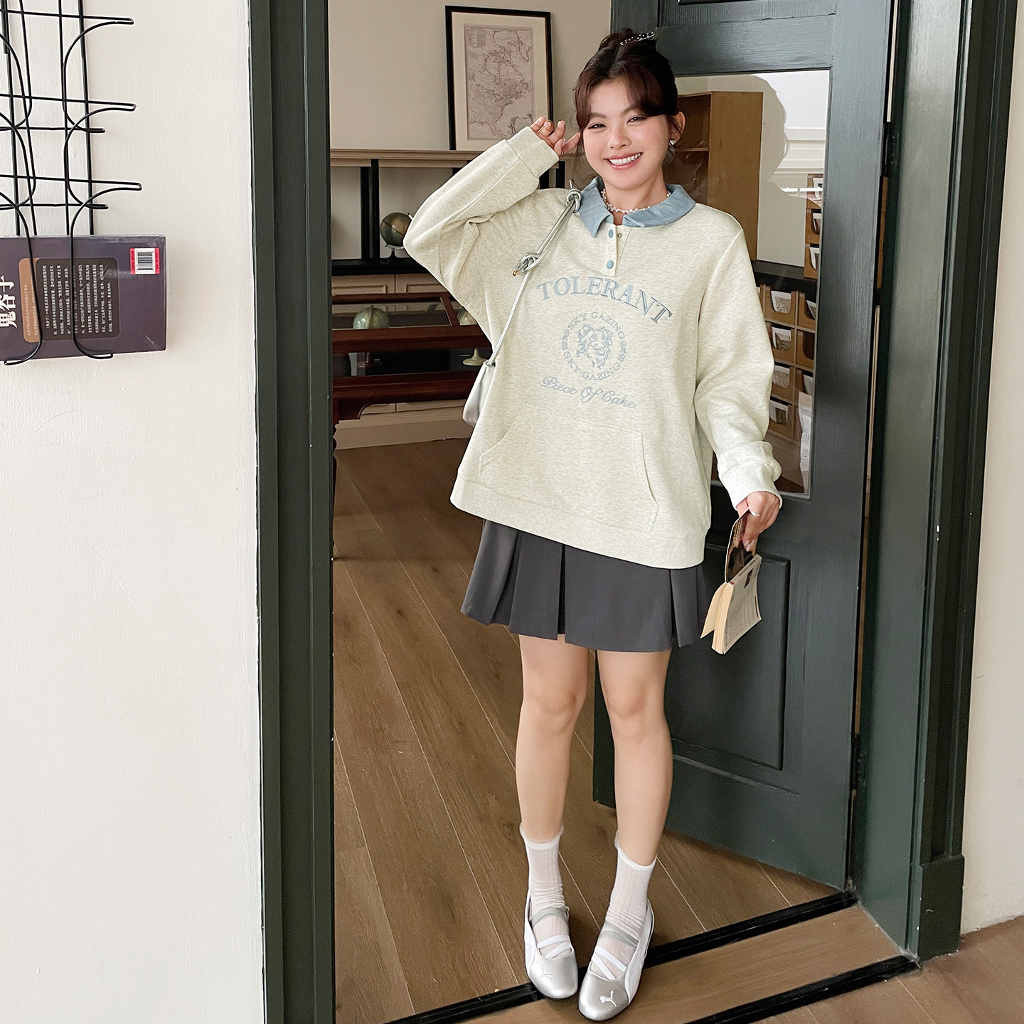 📚 秋天巨好看的上衣大码女装新款胖mm设计感撞色polo领正肩显瘦卫衣