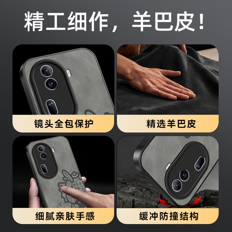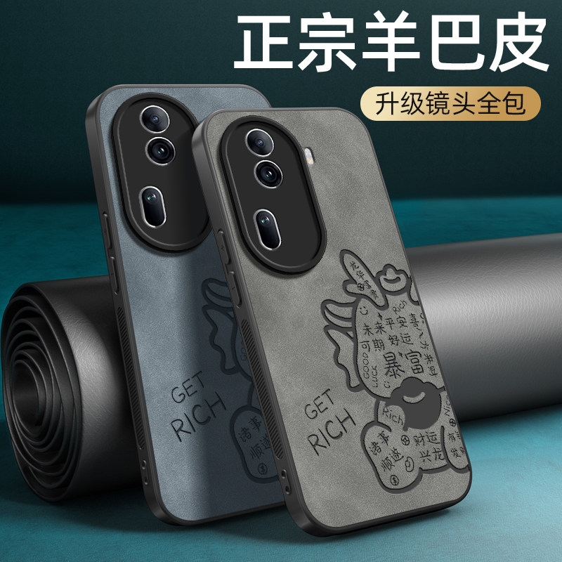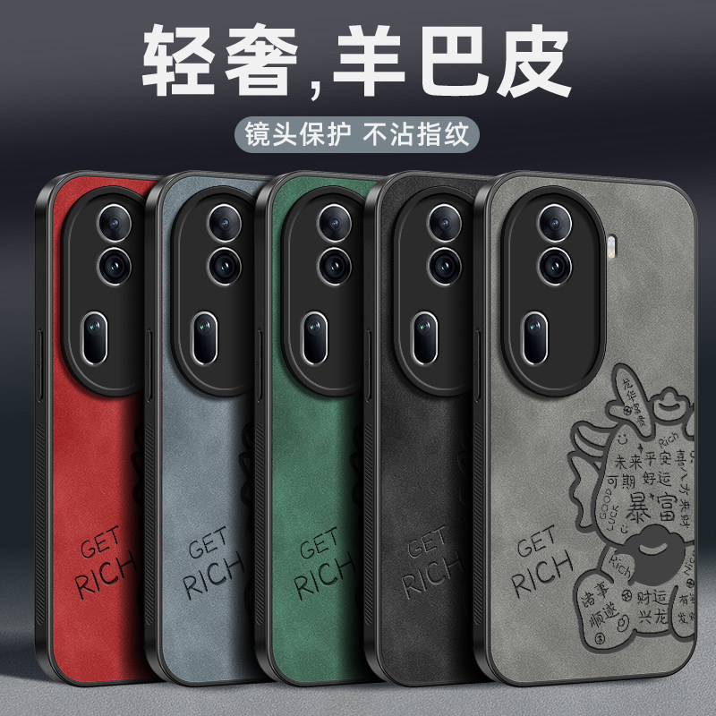 📚 财运兴龙适用opporeno11手机壳reno11pro保护套羊巴皮oppo镜头全包防摔opporen011轻奢高级感男新款外壳