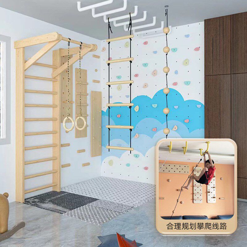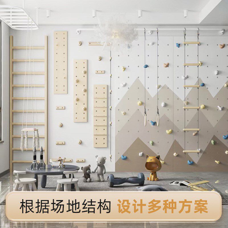 📚 青少年家用攀岩墙室内外实木质PE板体能拓展训练儿童攀登攀爬架