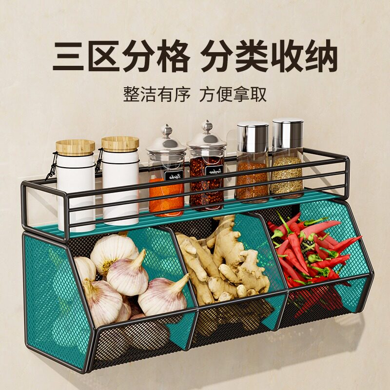 📚 厨房收纳筐置物架壁挂式调料架葱姜蒜菜篮子空间台面墙上墙壁杂物
