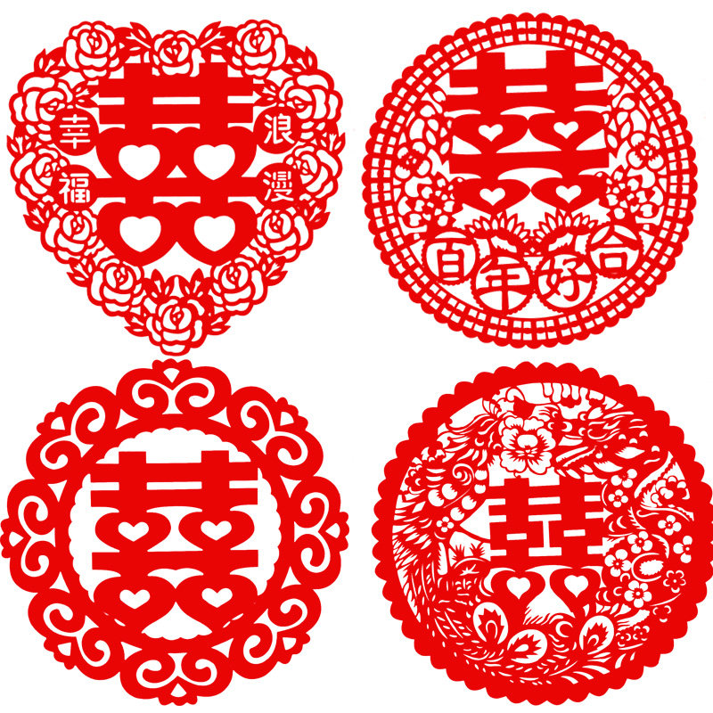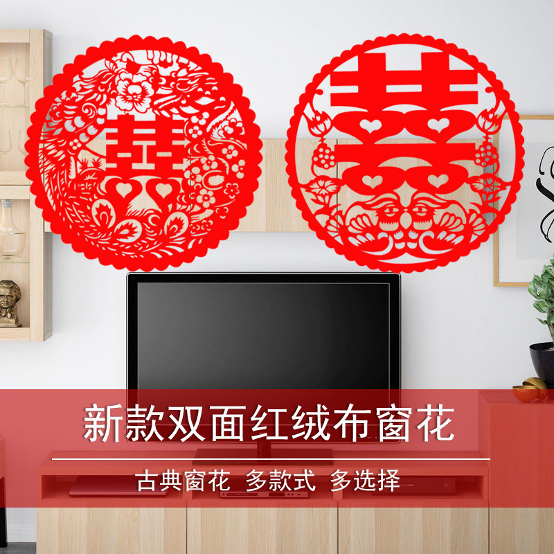 📚 双面绒布喜字窗花结婚镂空喜字贴婚庆用品婚房装饰玻璃门窗贴