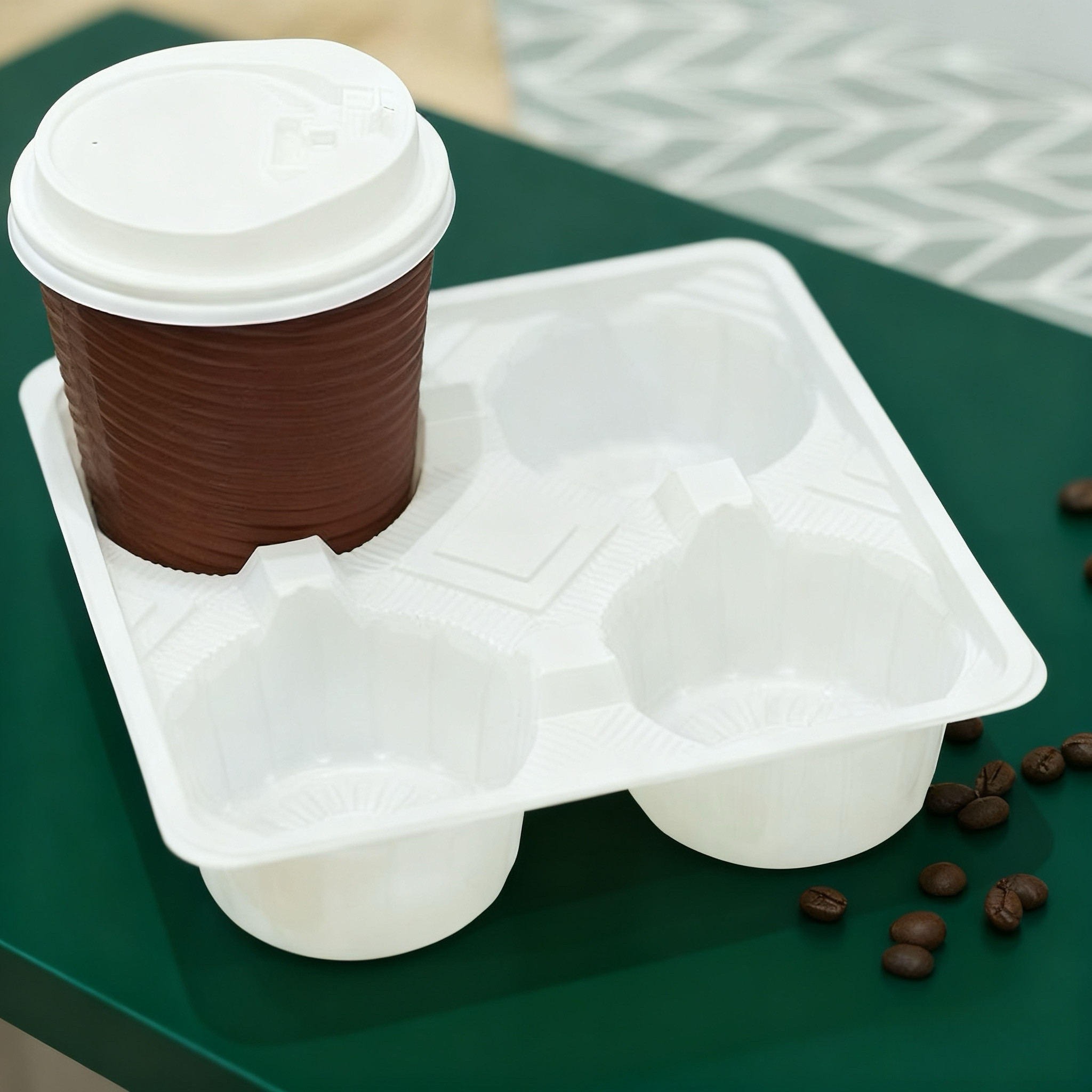 📚 一次性奶茶杯托塑料白色二杯托四杯托咖啡饮料打包防撒杯托奶茶店