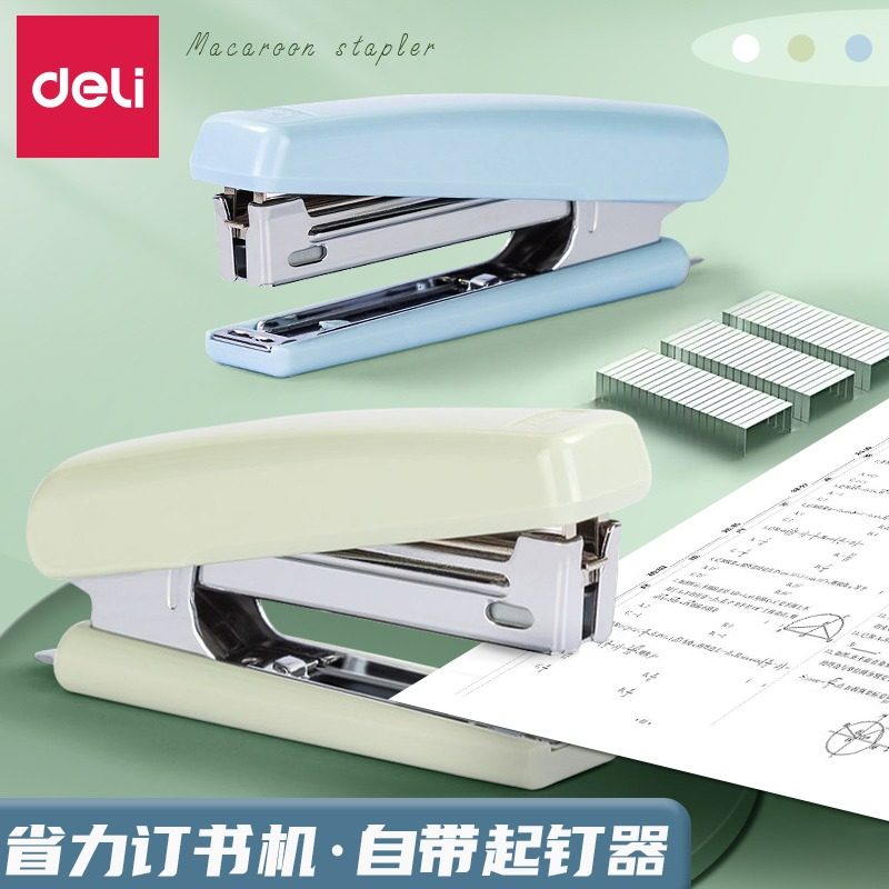 📚 得力订书机10号钉自带起钉器学生办公用多功能省力迷你小号订书器装订机家用外卖打包钉书机小型定书机订书钉