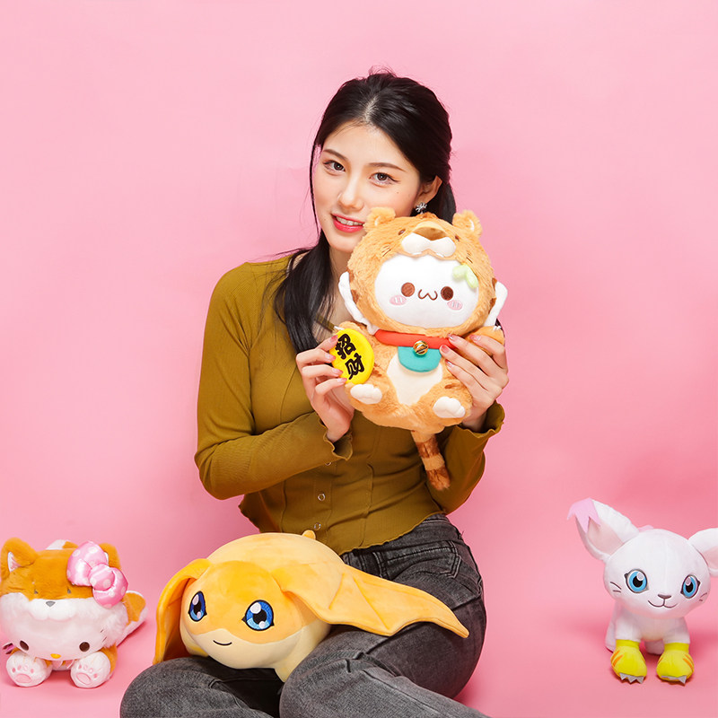 📚 正版长草颜团子毛绒玩具公仔招财猫玩偶数码宝贝抱枕六一生日礼物