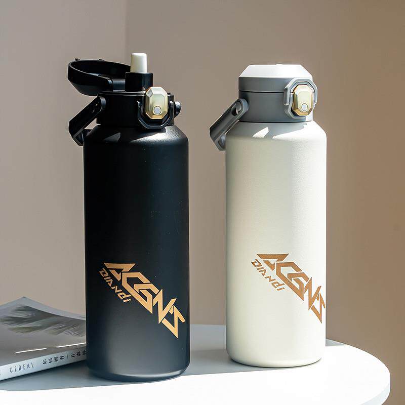 📚 新品大容量保温杯1000ml便携带吸管水杯简约男女士车载户外保温壶