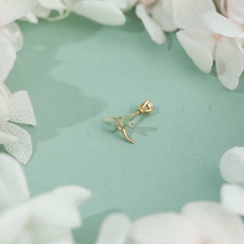 📚 一撇一捺YPYN蜻蜓耳钉9K金莫桑钻耳骨钉单只耳饰清新小饰品轻奢