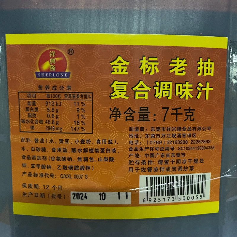 📚 多省包邮祥兴隆金标老抽复合调味汁7kg桶装餐饮饭店商用 炒菜