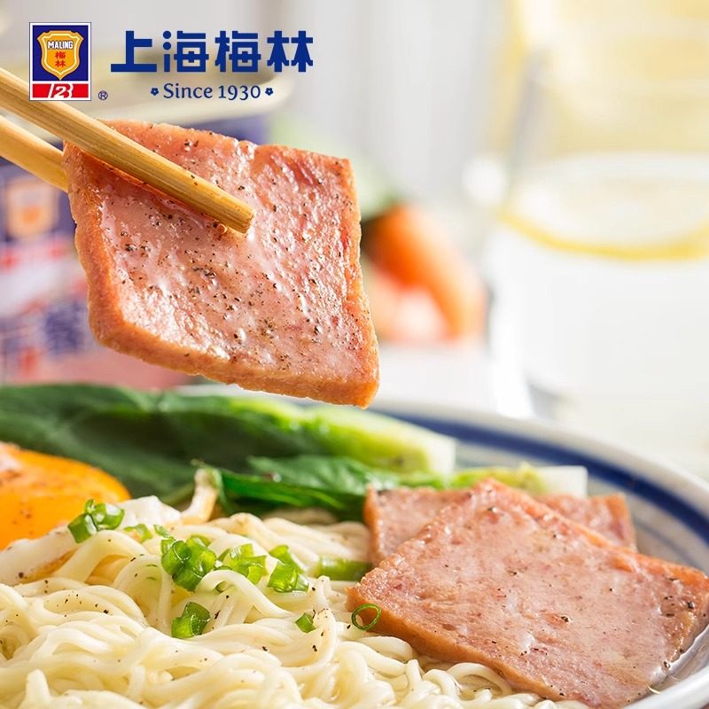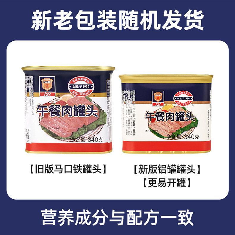 📚 上海梅林经典午餐肉罐头340g*10即食官方旗舰店不含鸡肉 应急储备