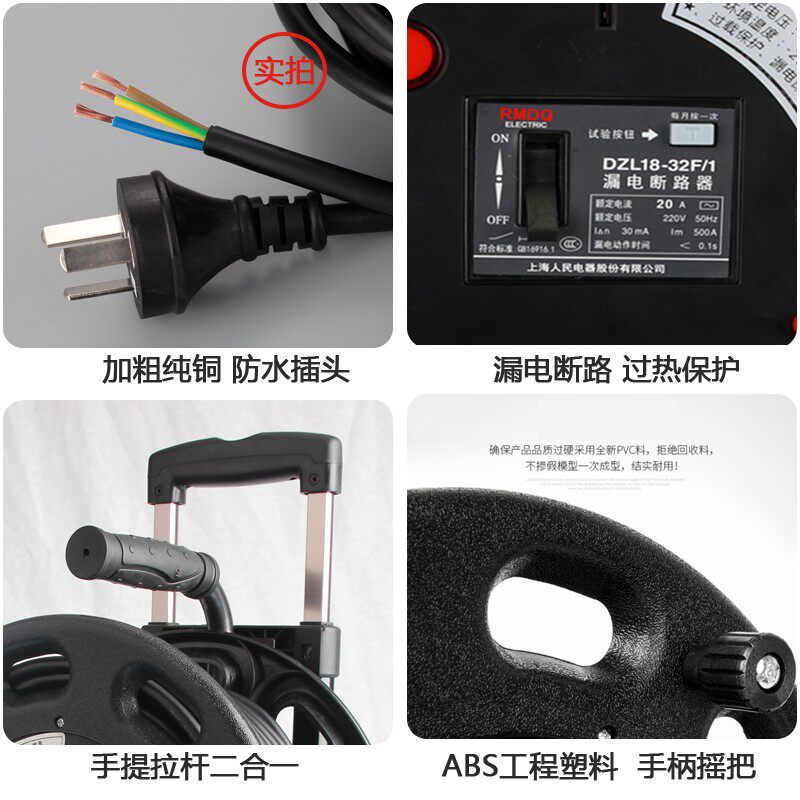 📚 电线收线盘轮380V三相四线25A插座32A全铜国标漏电保护工程拖线板