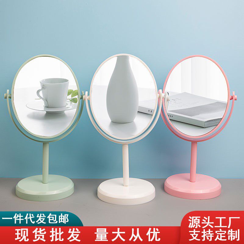 📚 速发创公新款化妆婚台式意主镜复古大号双面镜子结镜桌面翻转镜子