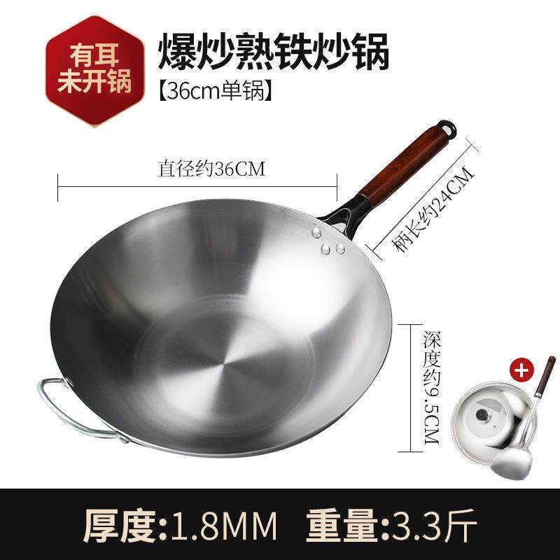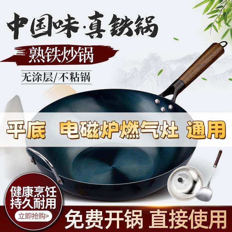 📚 厂家老式无涂平炒铁锅已开锅家用电层磁炉菜底944锅不粘锅炒锅