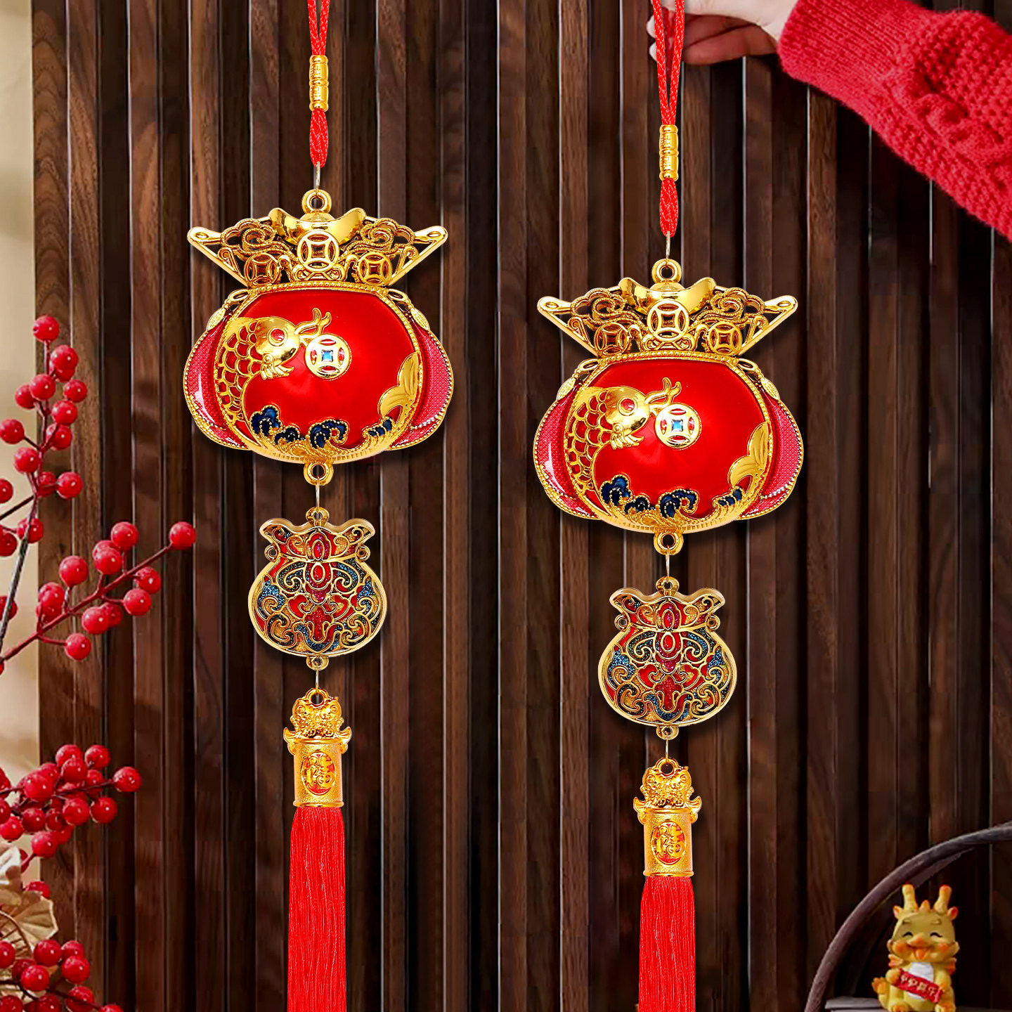 📚 新年装饰小灯笼挂件金鱼挂饰室内客厅春节元旦客厅装饰布置用品