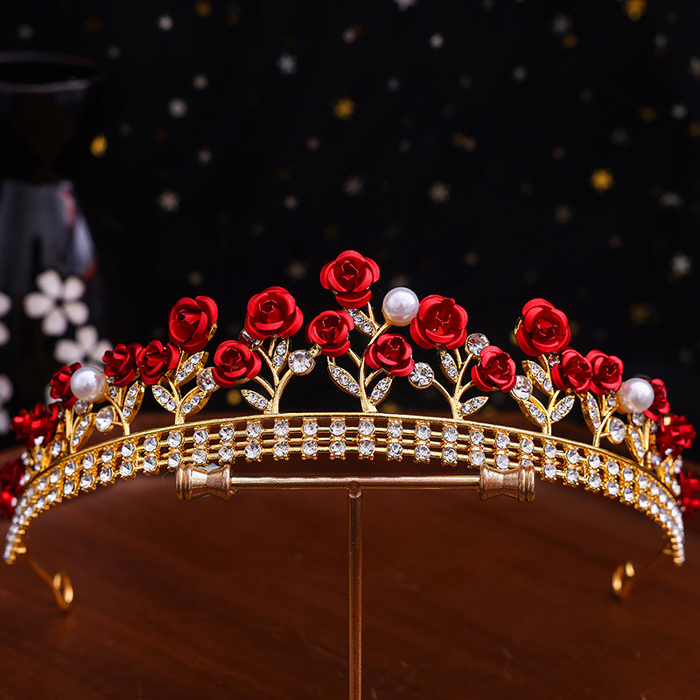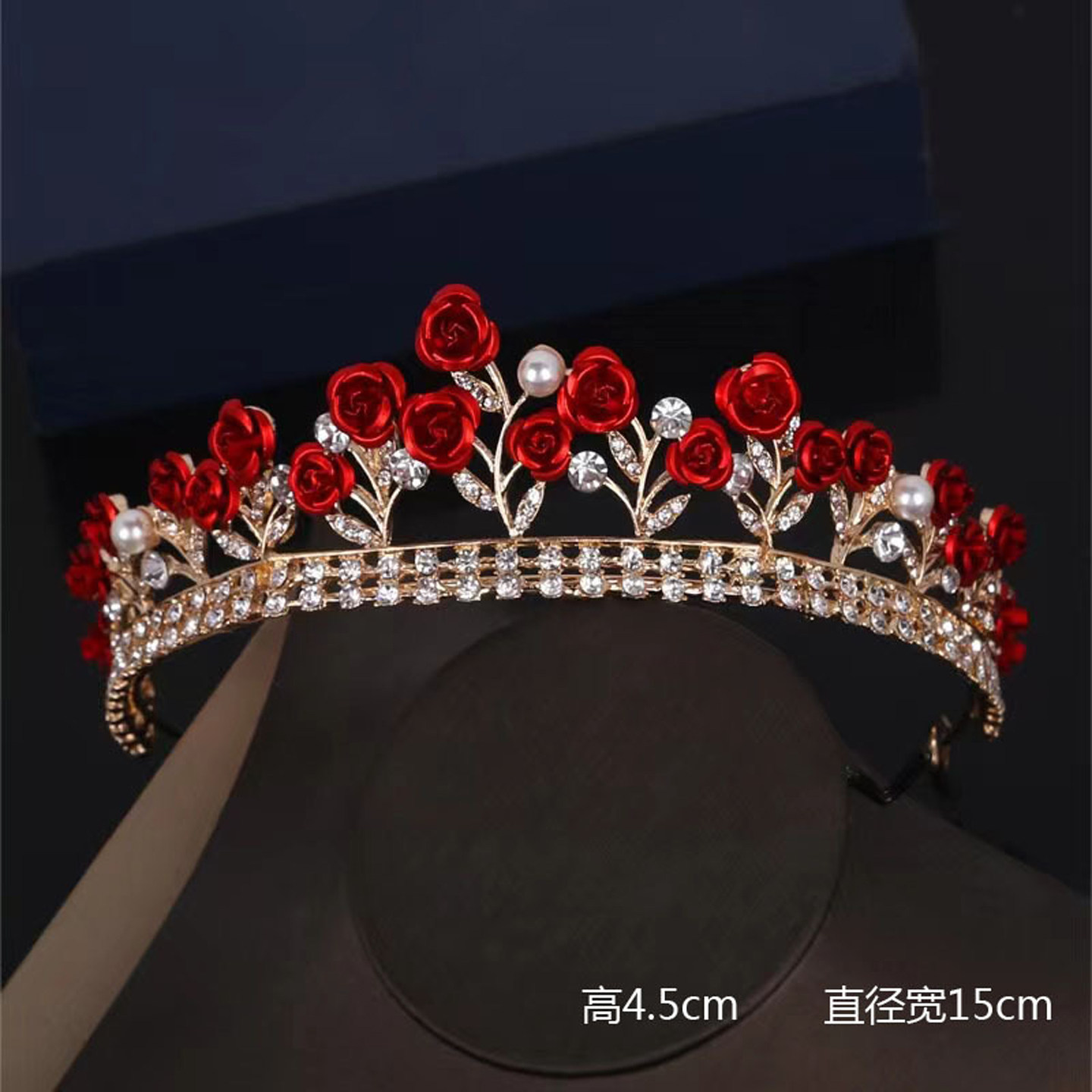 📚 新娘红色皇冠三件套喜庆中式头饰项链耳环敬酒服礼服结婚皇冠配饰