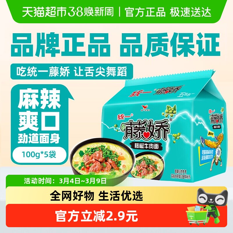 📚 统一方便面麻辣青花椒藤椒牛肉面泡面五合一速食