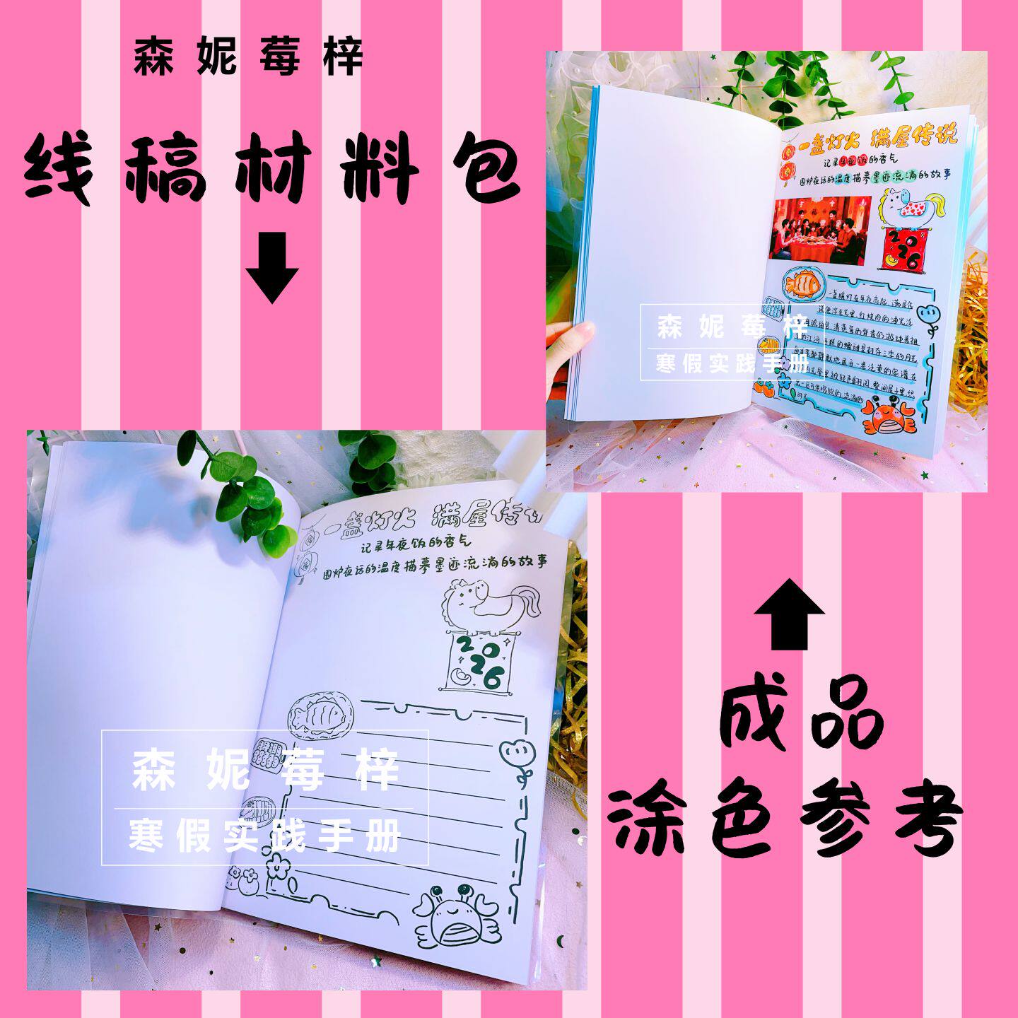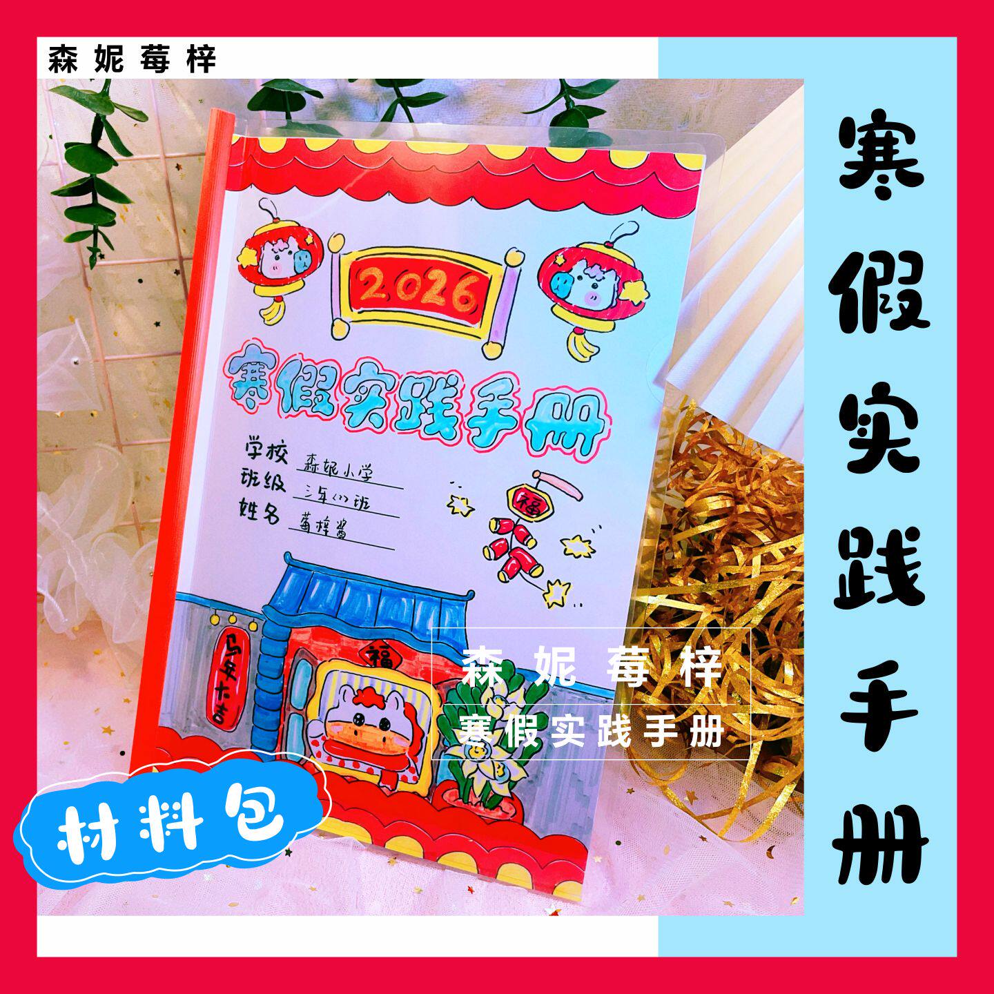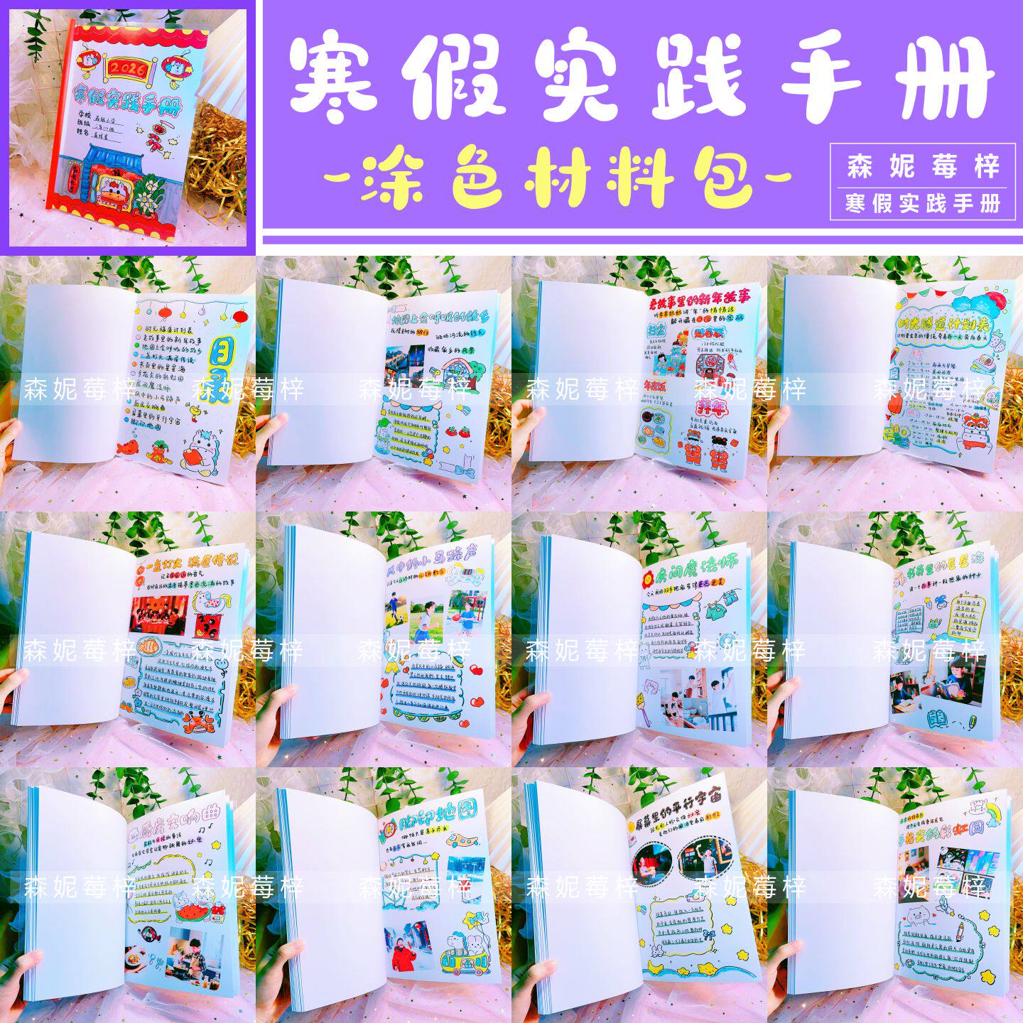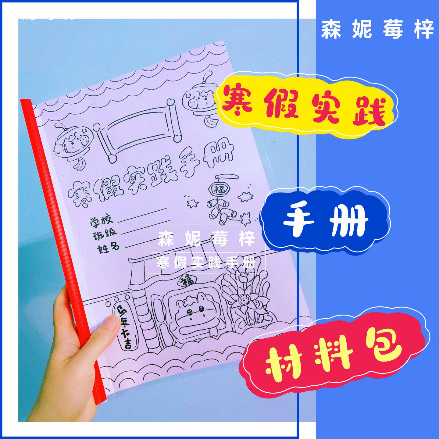 📚 小学生寒假实践活动手册DIY制作绘本德育作业材料包涂色半成品