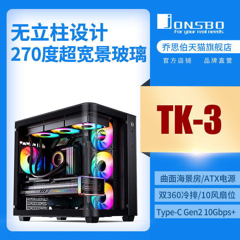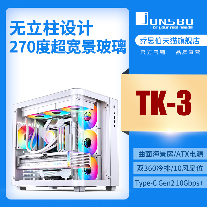 📚 JONSBO乔思伯TK-3机箱ATX曲面玻璃海景房