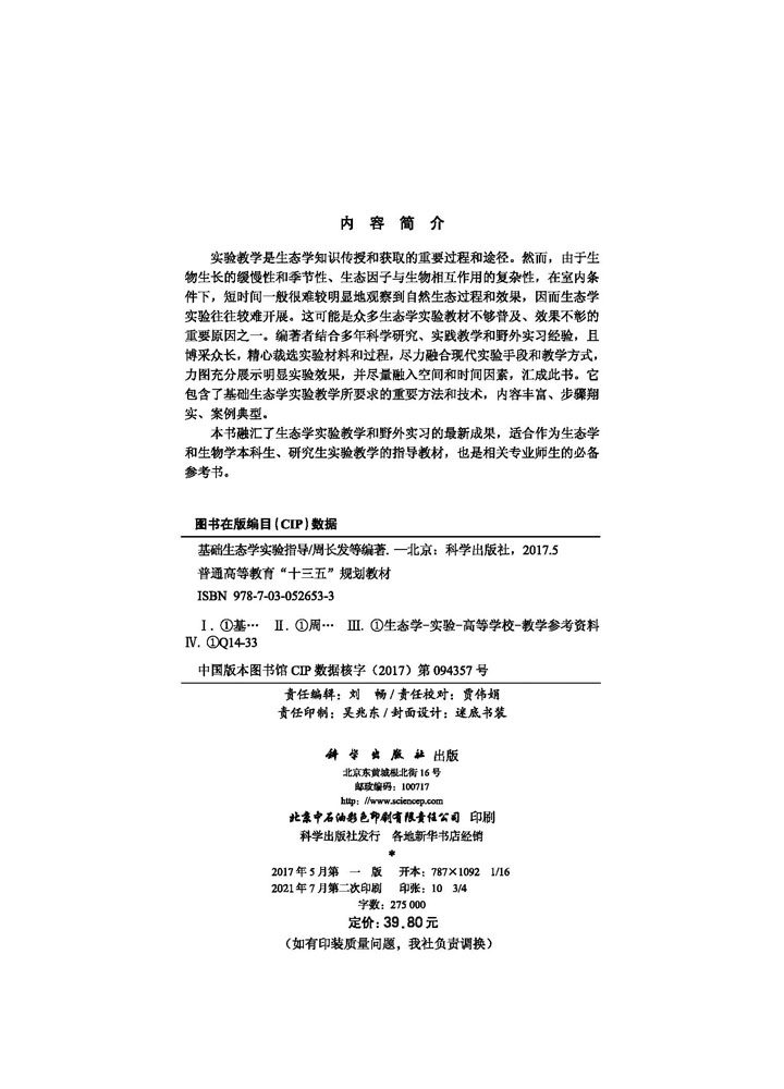 📚 基础生态学实验指导 周长发 科学出版社 9787030526533
