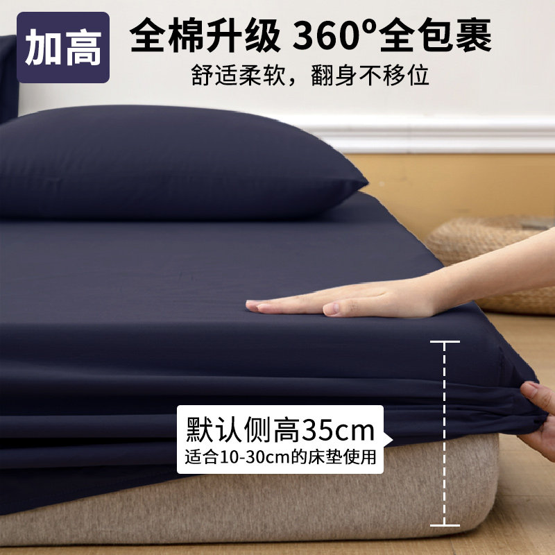 📚 A类纯棉床笠King198x203加高床罩全棉纯色床垫罩保护套200x220cm