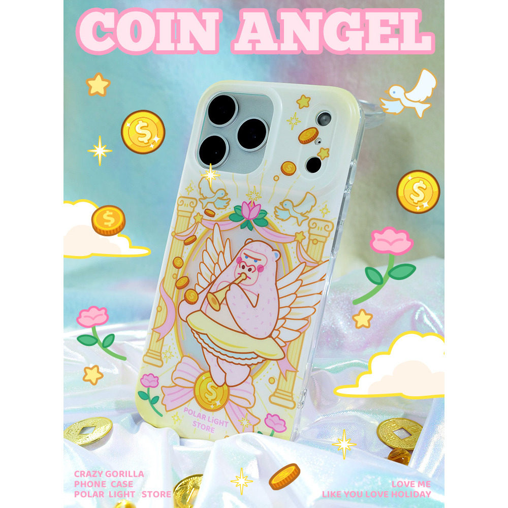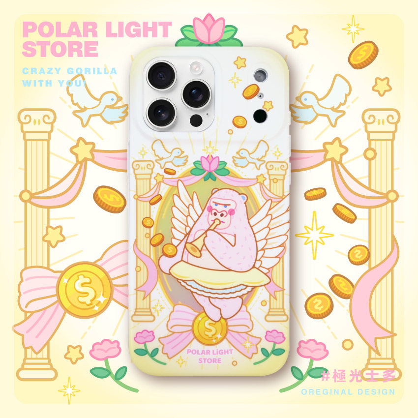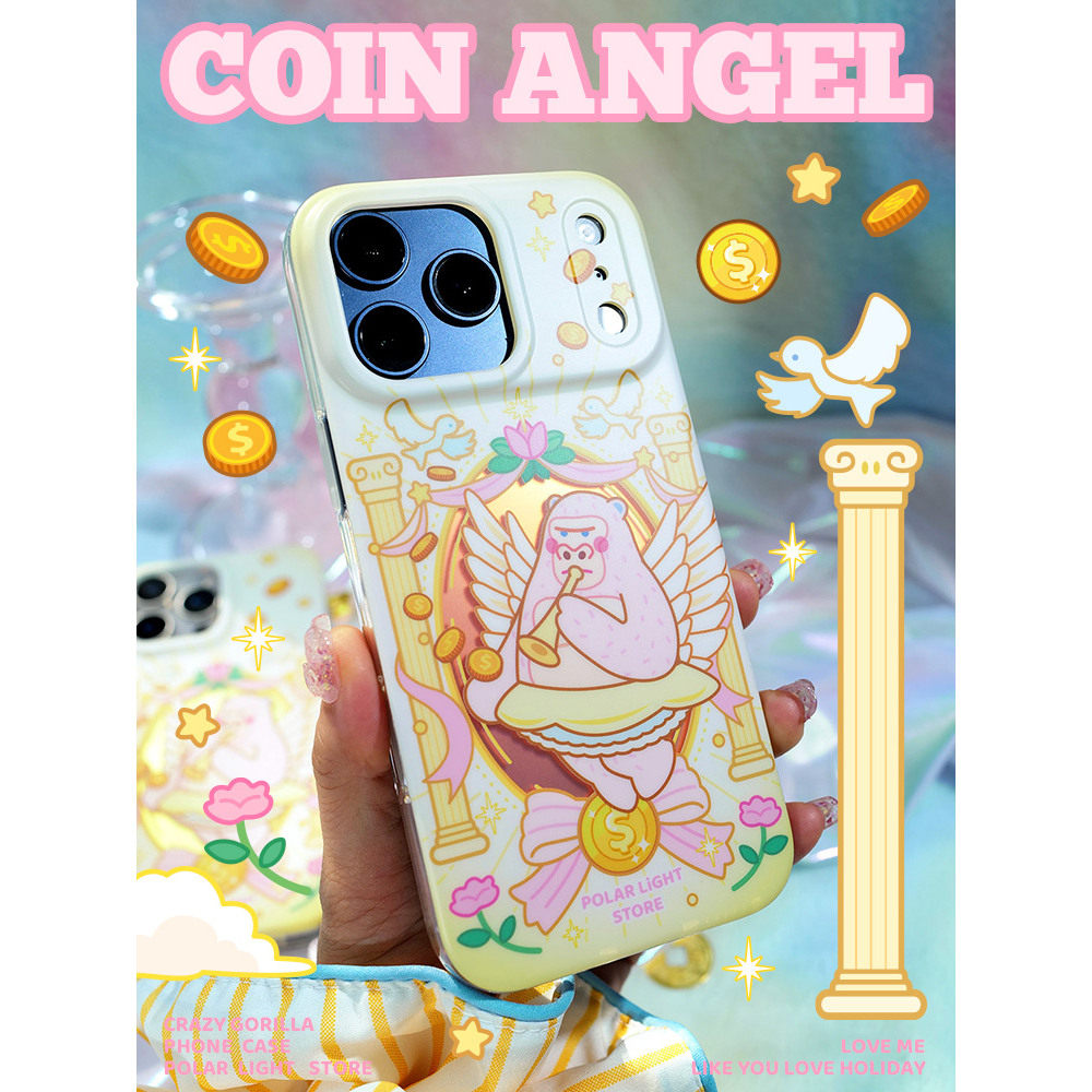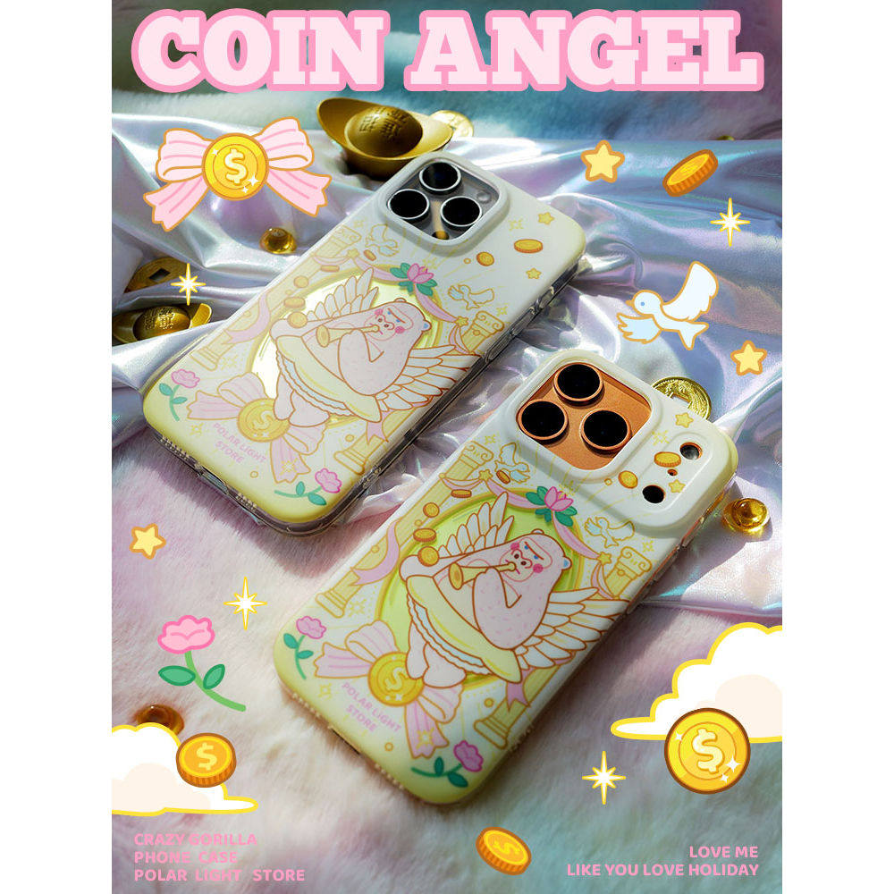 📚 金币天使の吹奏^^极光士多原创适用苹果17Promax磨砂金光可爱插画手机壳iPhone16pm保护套手机套ins风