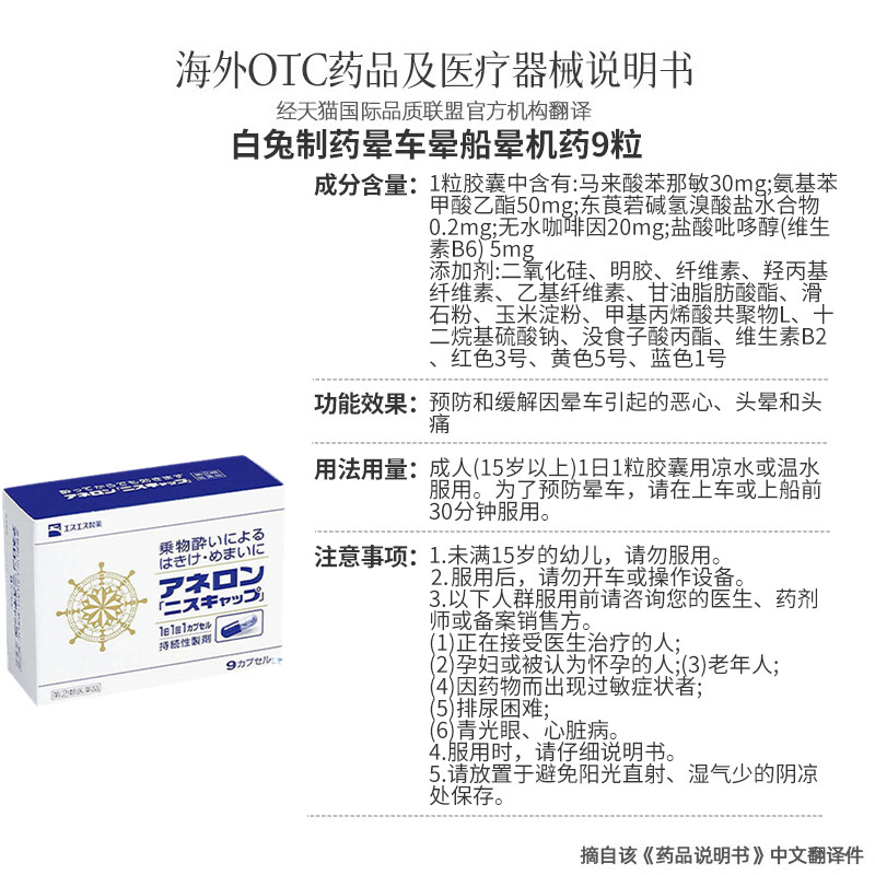📚 日本进口大白兔晕船药晕车晕机成人儿童晕车的药防眩晕呕吐神器