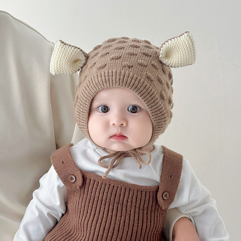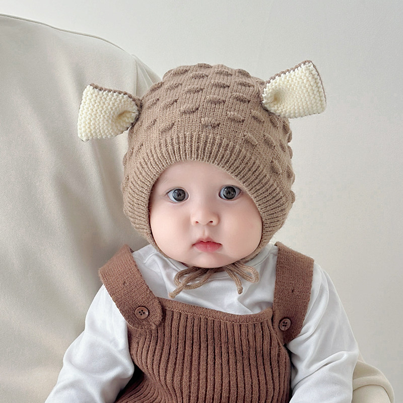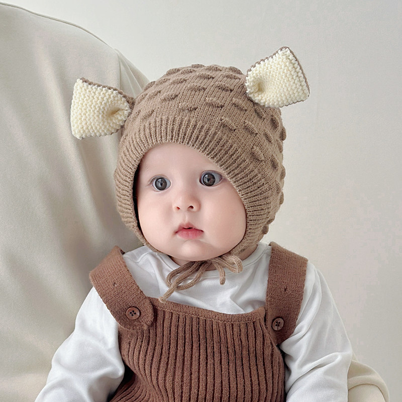 📚 婴儿包耳帽秋冬季宝宝超萌耳朵针织帽子男女童冬天保暖护耳毛线帽