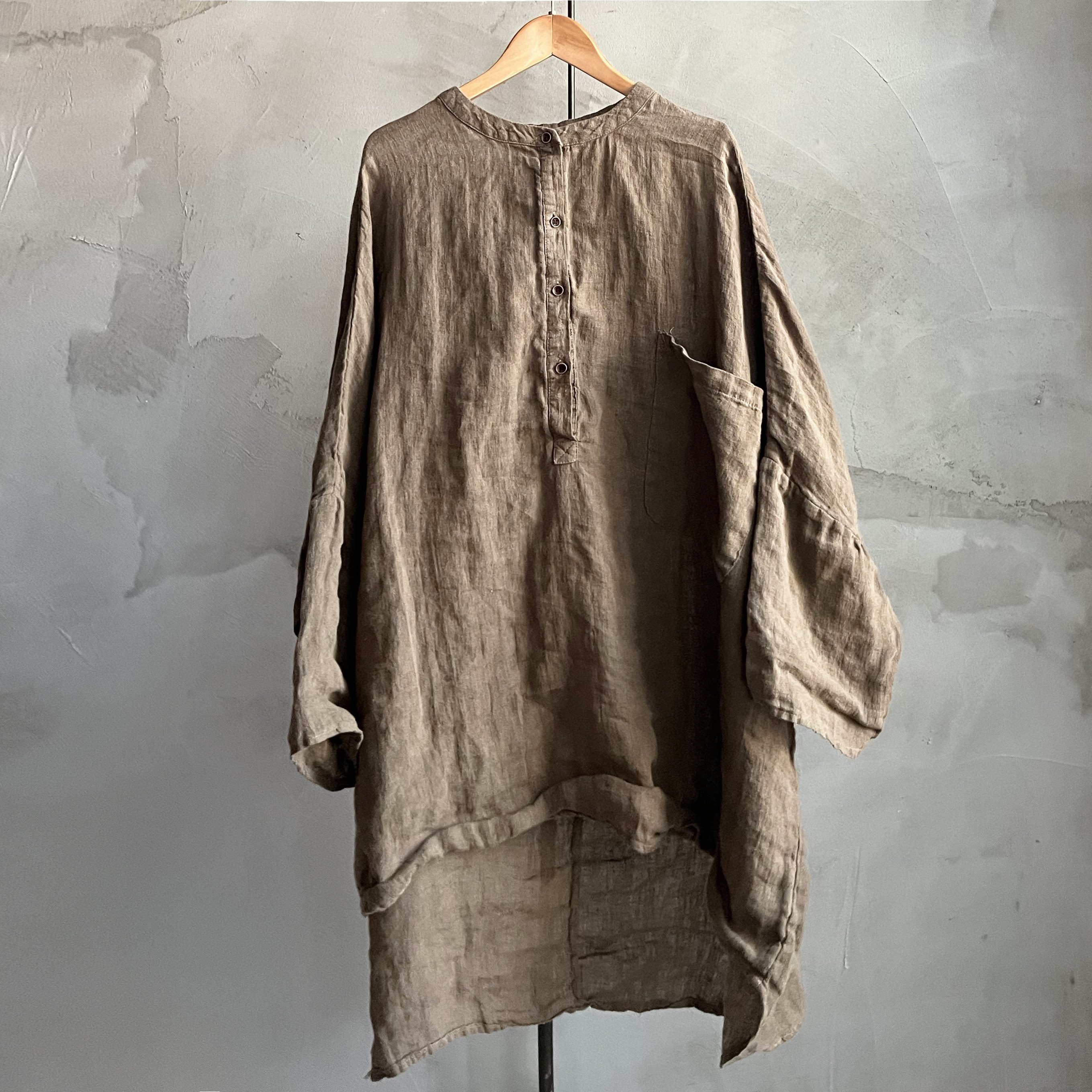 📚 沉香布衣草堂 套头衬衫亚麻长袍做旧原创2025春上衣大衫S25u03048
