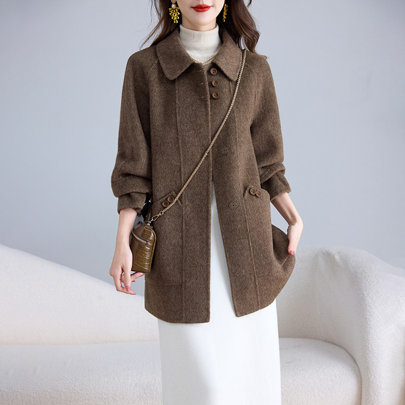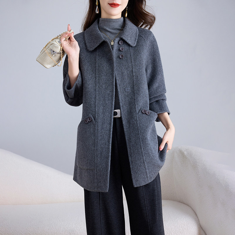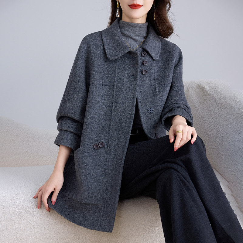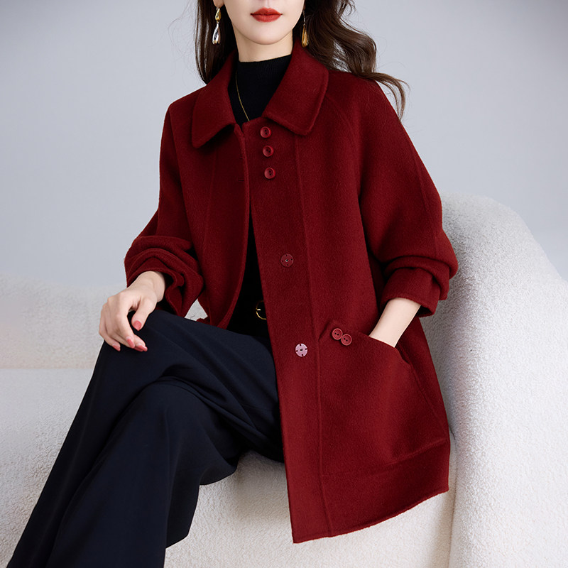 📚 卡若维娅双面呢羊毛大衣女零羊绒中长款红色毛呢外套秋冬妈妈上衣