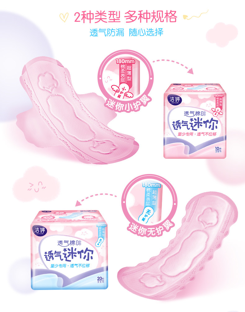 📚 洁婷迷你巾180mm量少无护翼小护垫女日用正品官方旗舰店官网