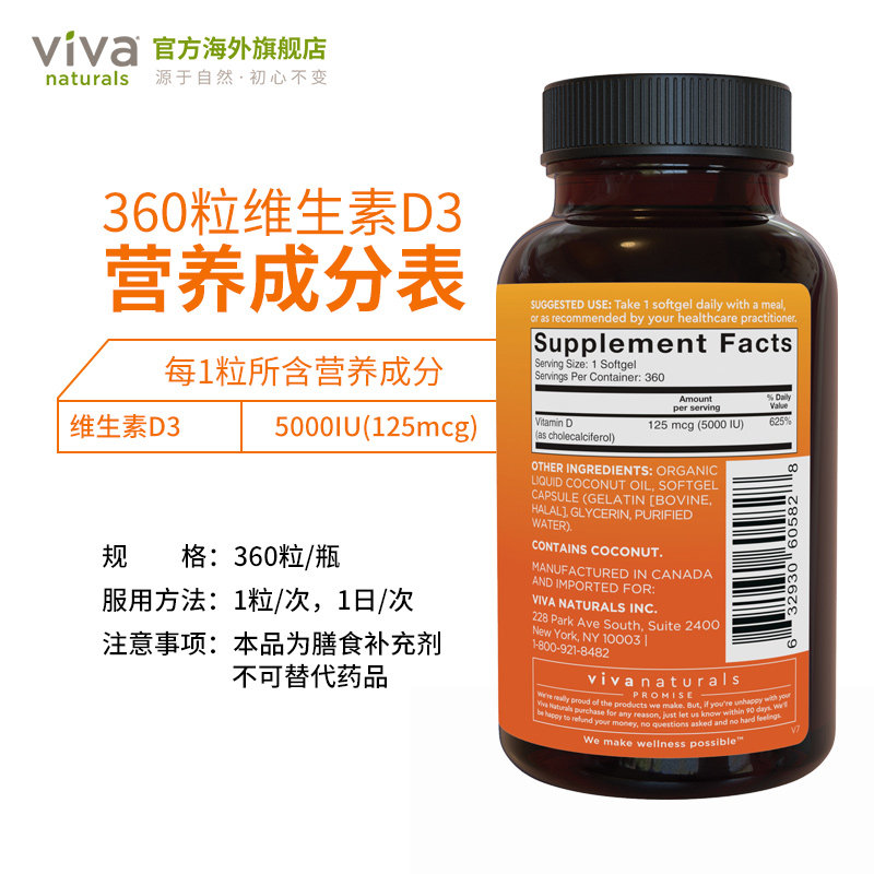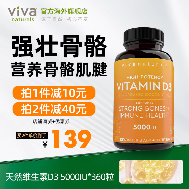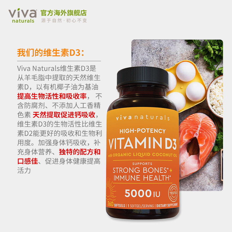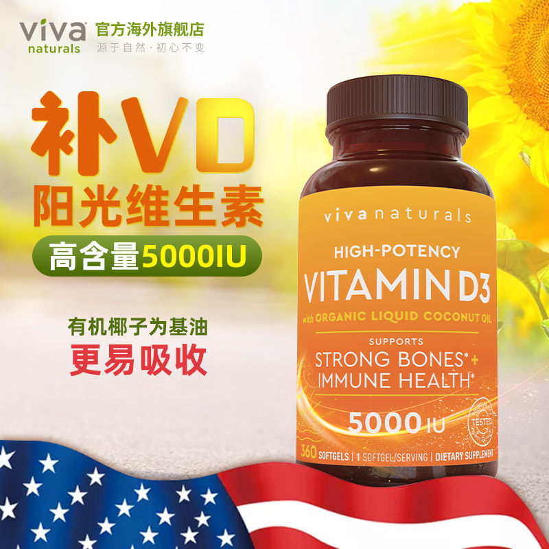 📚 vivanaturals美国进口维生素d3软胶囊5000iu阳光维生素d补钙360粒