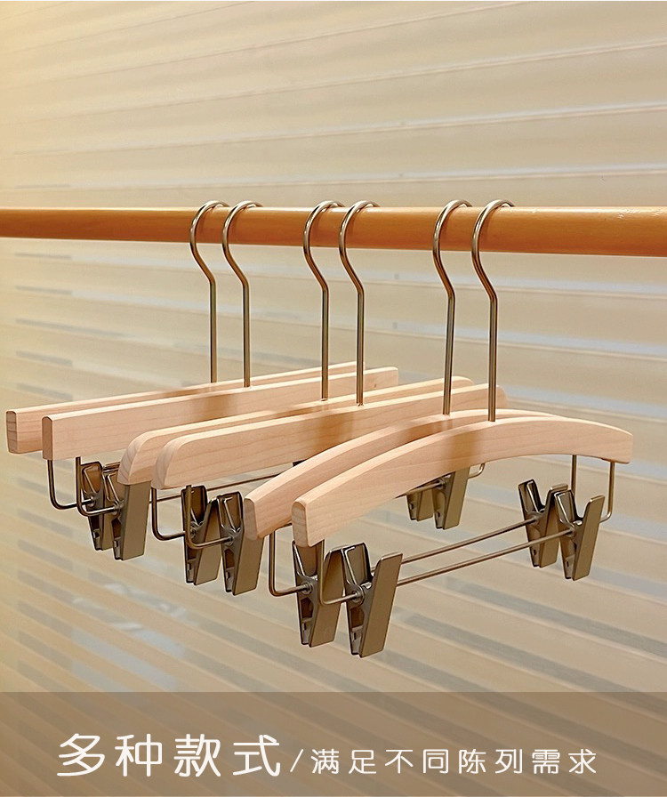 📚 衣架服装店专用原木色无漆实木衣架裤夹童装店女装店木质衣撑防滑
