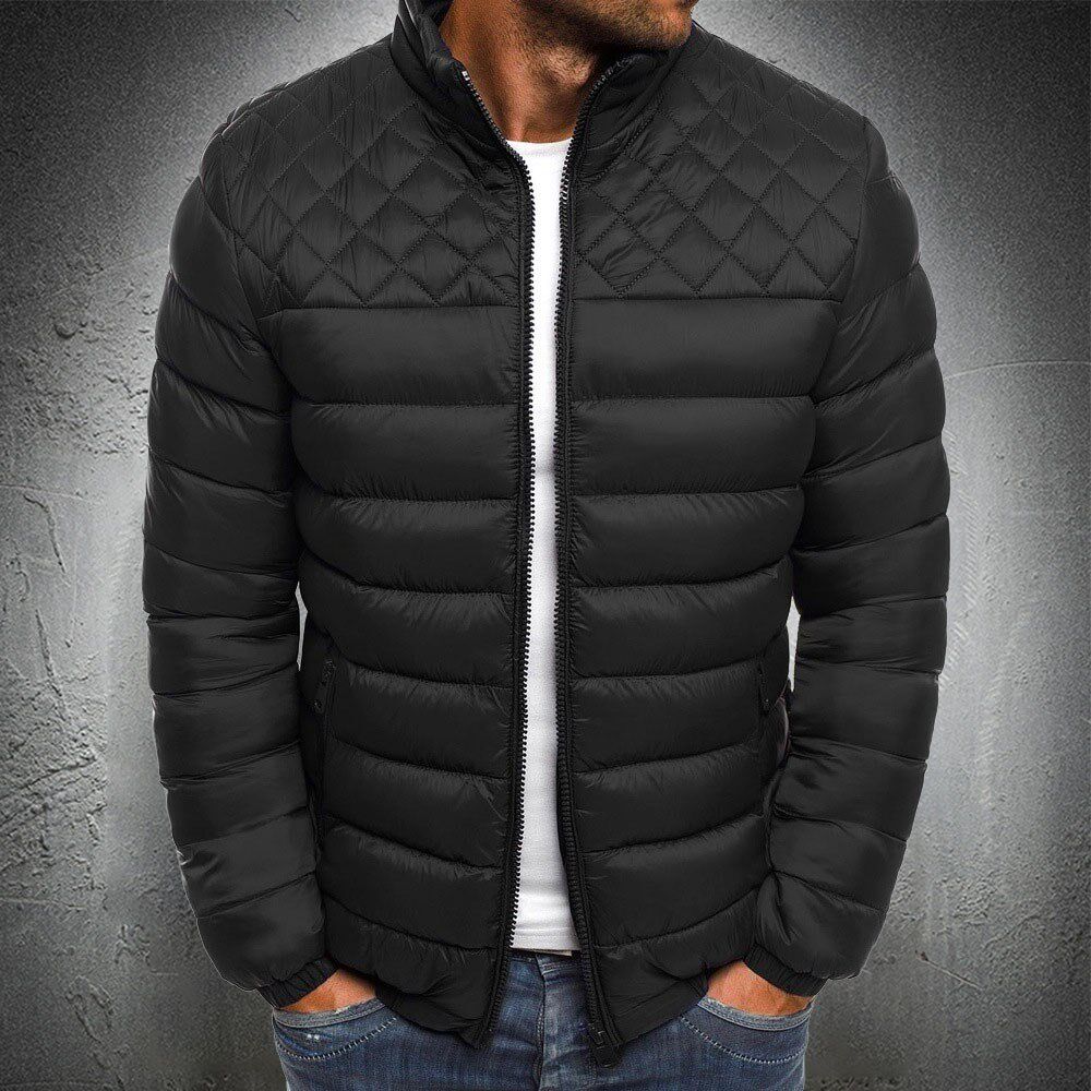 📚 Autumn Jacket Men Argyle Pattern Parka Coat Bubble Jacket Me